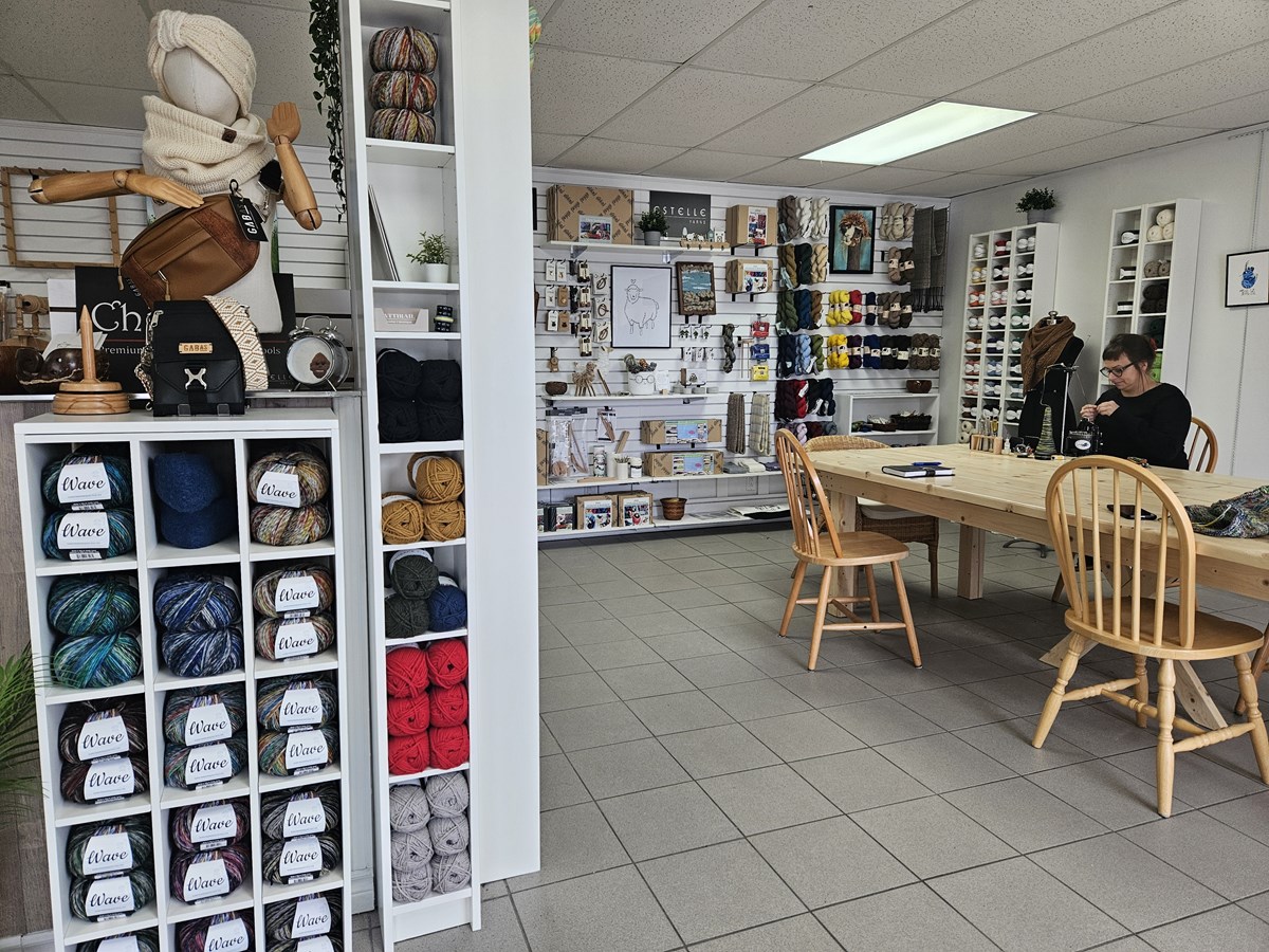 « J’effectuais des ateliers soit dans les écoles, dans certaines boutiques ou à la maison. Cependant, je traînais toujours mes outils avec moi, et je commençais à ne plus prendre de plaisir à faire ça. C’est d’ailleurs là qu’est né le nom de ma boutique, Attirail. Ici, je vends de l’équipement et des matériaux pour tout type d’art dans le domaine du textile. Je vends de la fibre animale, de la fibre synthétique, jusqu’au produit fini », mentionne la principale intéressée, qui veut que son atelier soit avant tout une place de rencontre et de création.