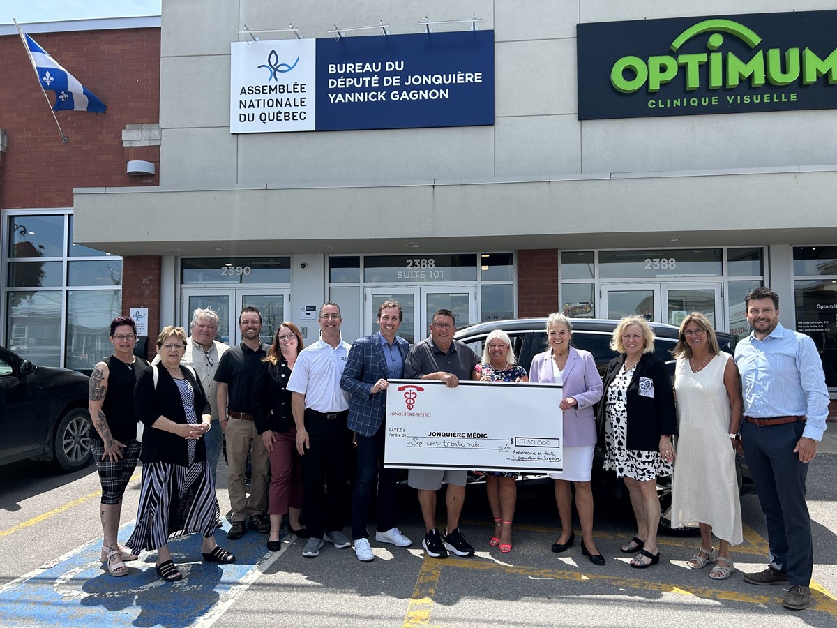 Jonquière-Médic annonce que grâce à la population et au comité des Ambassadeurs présidé par le député Yannick Gagnon, 730 000 $ ont été amassés depuis la relance du service en novembre 2023. Cette somme inclut pour une deuxième année consécutive un montant de 50 000 $ du ministre de la Santé, M. Christian Dubé.