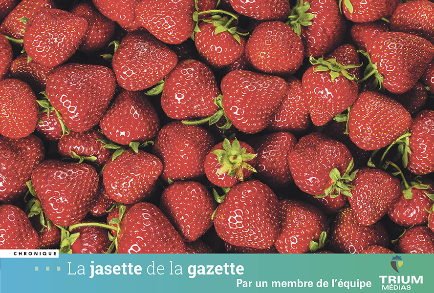 Je tapote les touches de mon clavier pour écrire cette chronique, les doigts rougis de fraises. De fraises du Québec, plus précisément de Chambord. J’en équeute une cinquantaine par jour ces temps-ci pour m’en délecter comme les petits bonbons délicieux qu’ils sont, rouge vif et sucrés à souhait.