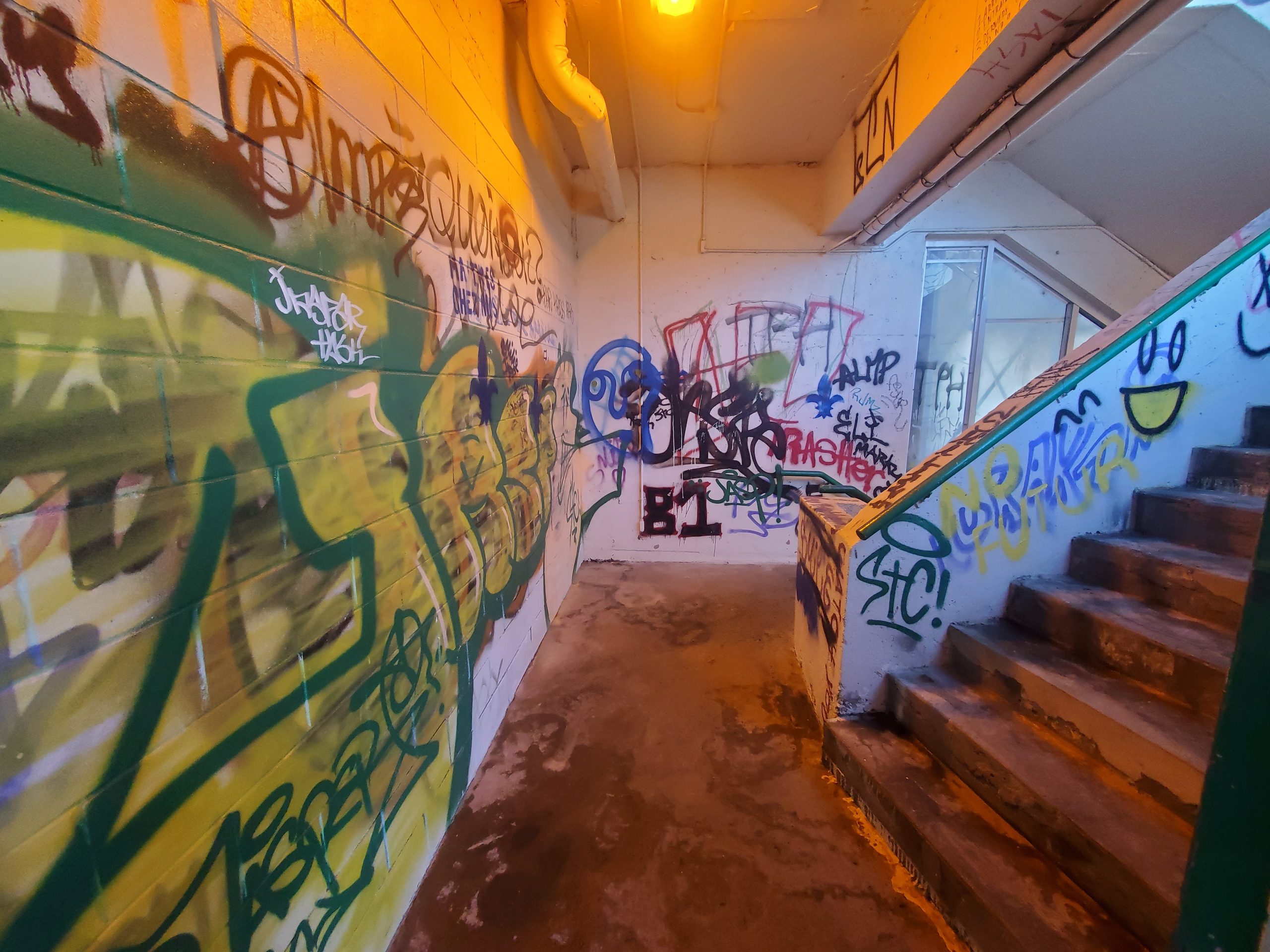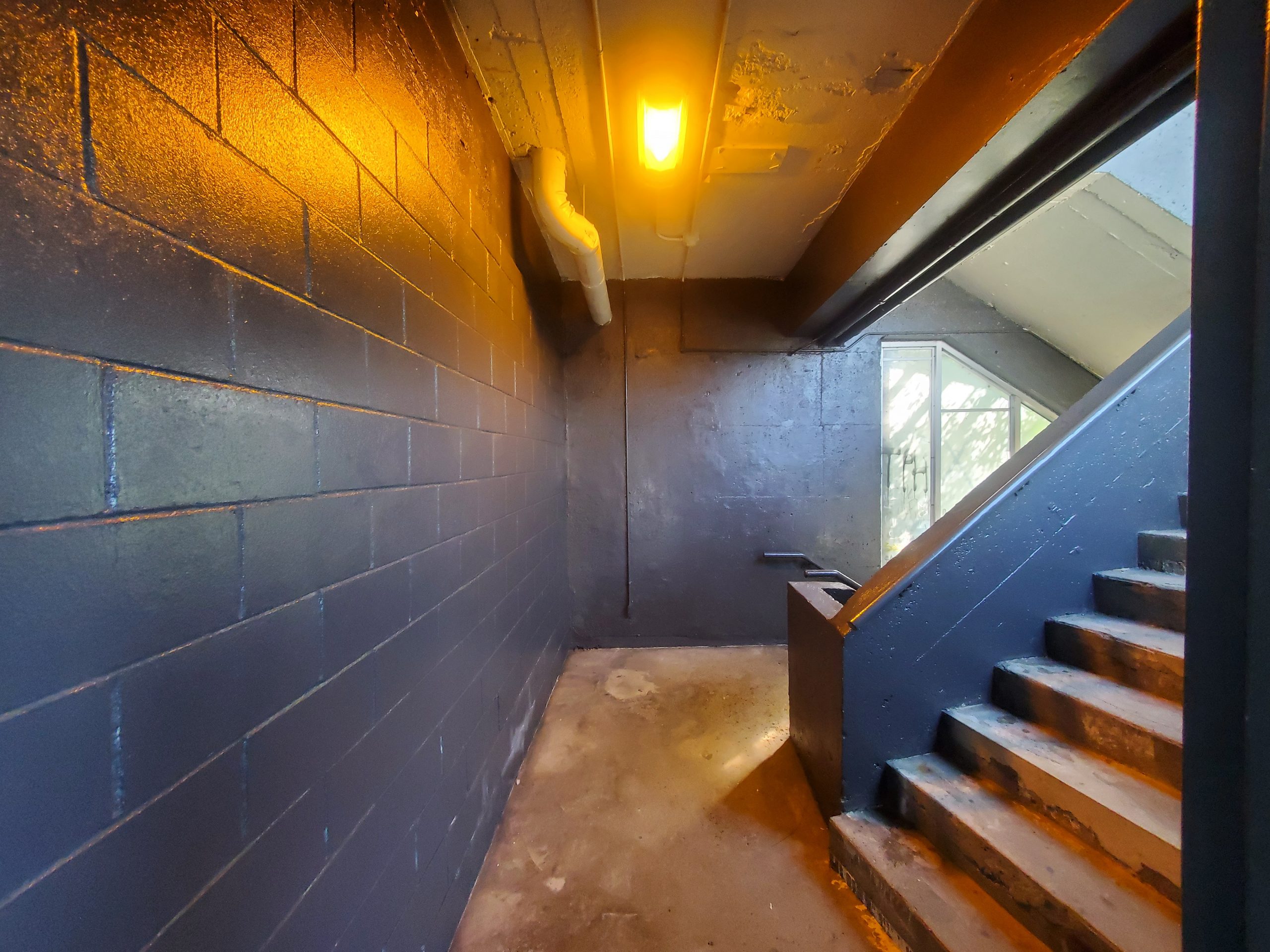 Ainsi, les cages d’escalier ont été repeintes en entier, recouvrant ainsi les nombreux graffitis. Il reste pour l’instant les fenêtres à réparer.