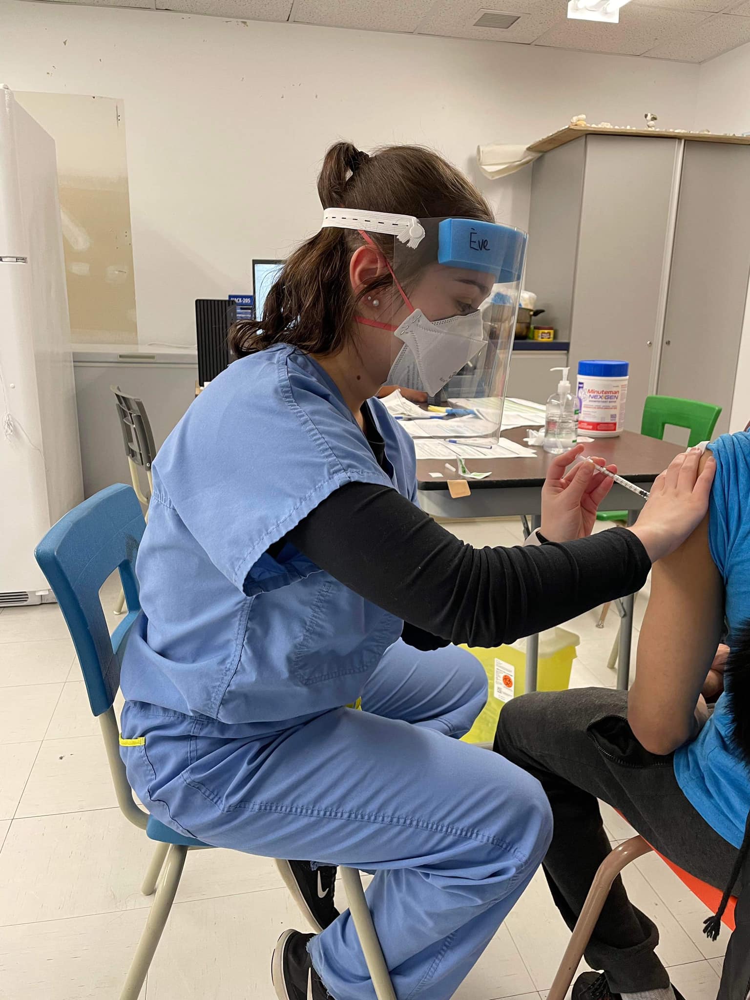 Pour une première fois, Ann-Gélikas Fortin, Frédéric Perron et Ève-Marie Fortin-Smith ont goûté à la réalité polaire du Grand Nord québécois. Les jeunes professionnels, équipés de visières de protection et de masque N95, ont vacciné sans relâche dans un environnement méconnu.