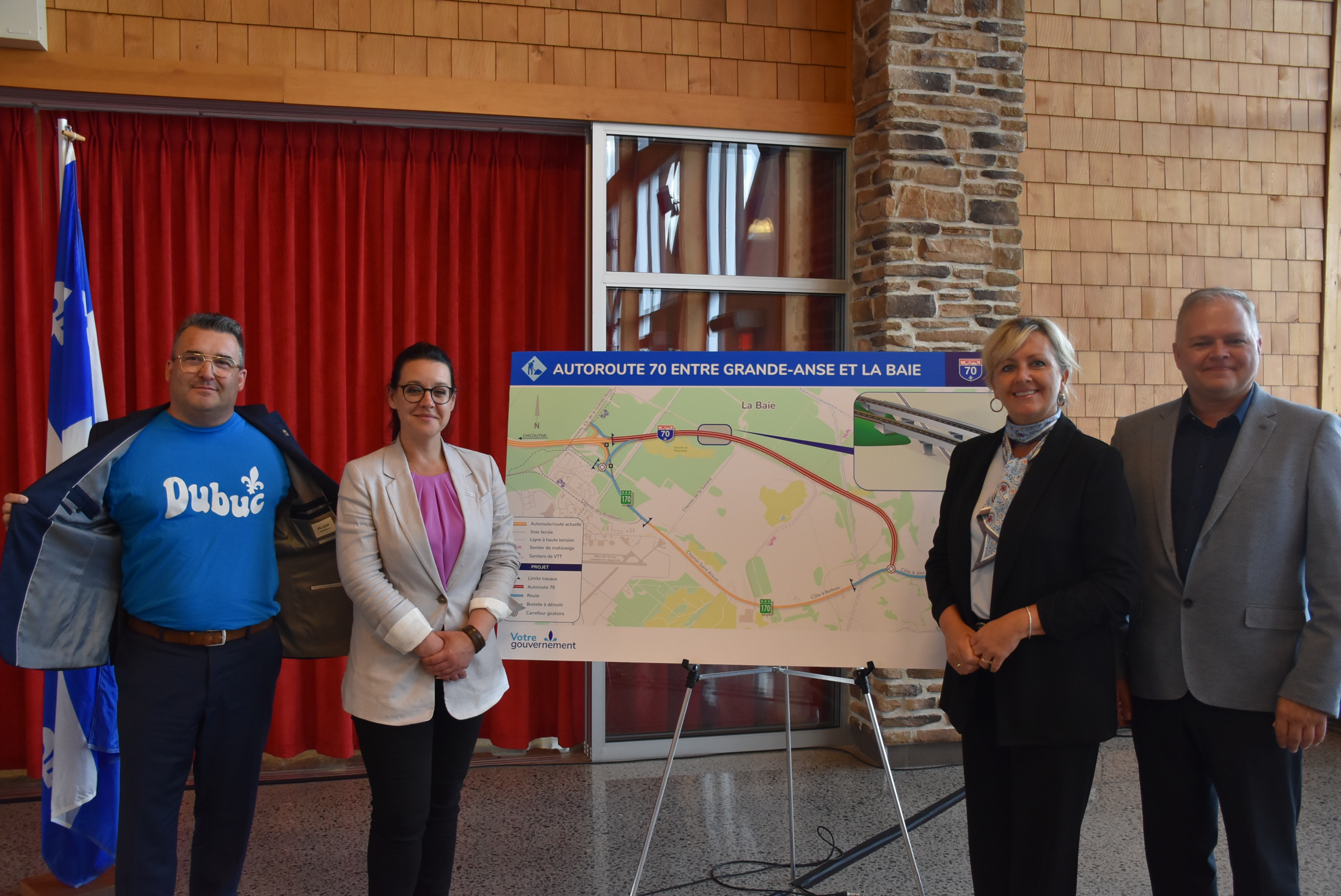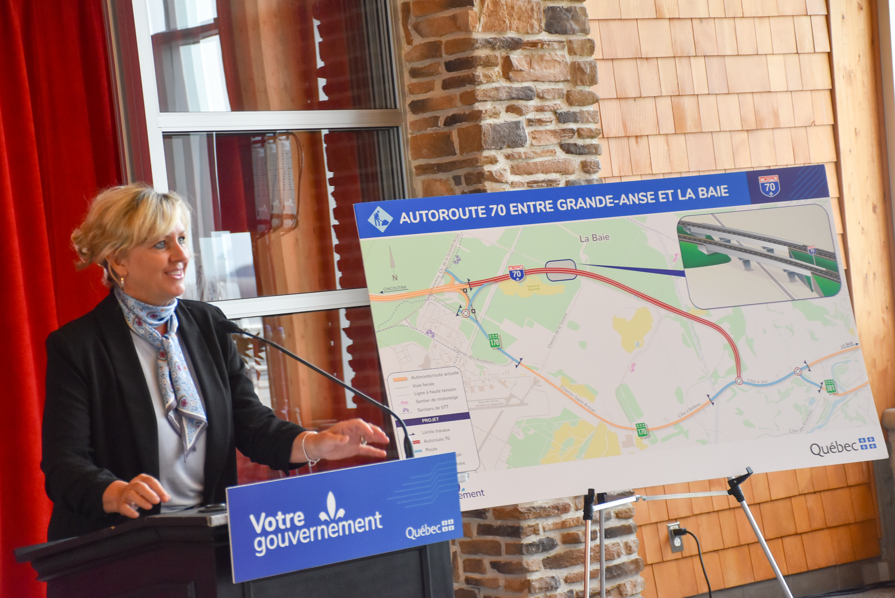 C'est la ministre des Affaires municipales et de l'Habitation et ministre régionale Andrée Laforest qui en a fait l'annonce en début d'après-midi à La Baie. Elle était notamment accompagnée de la mairesse de Saguenay Julie Dufour, du député de Dubuc François Tremblay et de Donald Boily, directeur régional du ministère des Transports du Québec (MTQ).