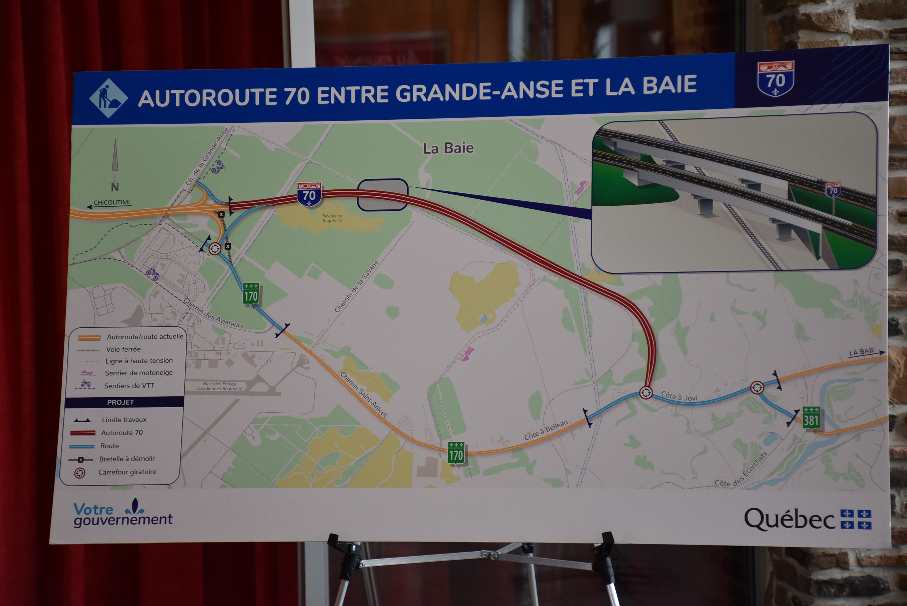 Le tronçon est de l'autoroute 70 qui doit se rendre jusqu'à La Baie sera mis en service en 2028, a annoncé le gouvernement du Québec. Les travaux, qui débuteront cet été, représentent des investissements de 307,4 M$.