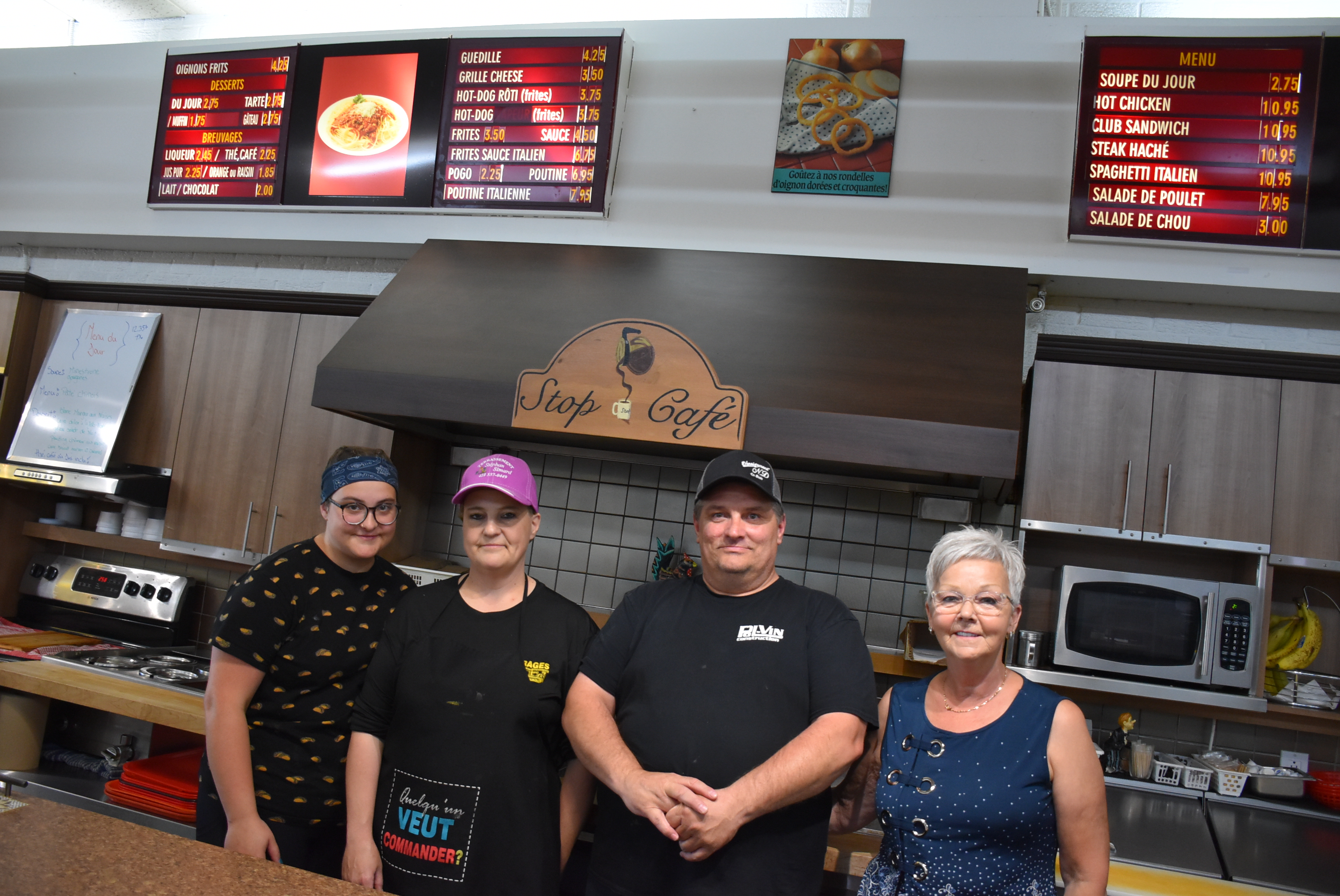 Un esprit de famille, voilà l’ambiance qui règne au Stop Café, véritable institution à La Baie. Propriétaires depuis février 2021, la famille Grenon-Dallaire ne manque pas une occasion de faire sourire la clientèle. Là-bas, tout le monde fait partie de la famille.