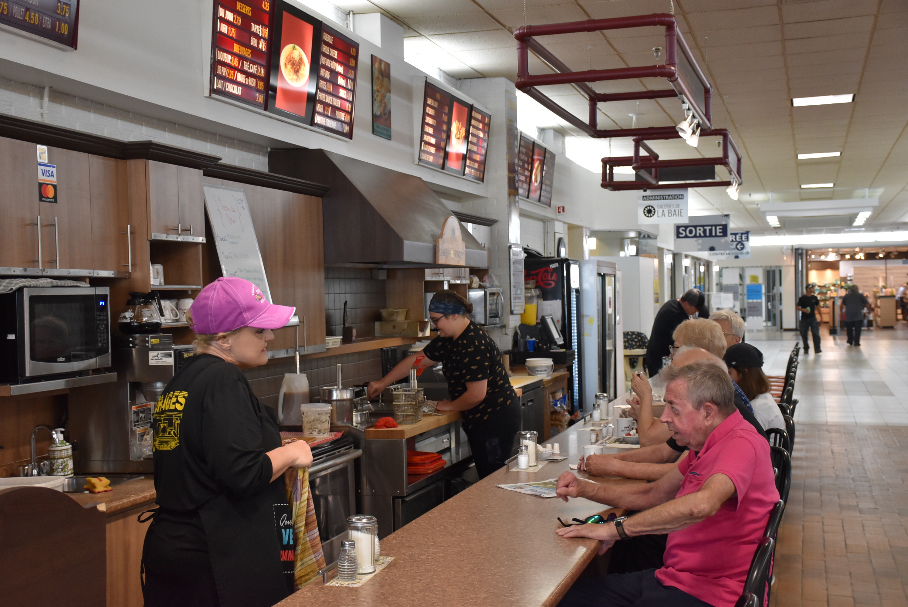 Situé dans le modeste centre commercial Les Galeries de La Baie, le Stop Café a été ouvert il y a 35 ans par Gilles Fortin. Racheté en 2005 par Jacqueline Gagné, elle l’a ensuite vendu au couple Steeve Grenon et Nina Dallaire en pleine pandémie en février 2021.