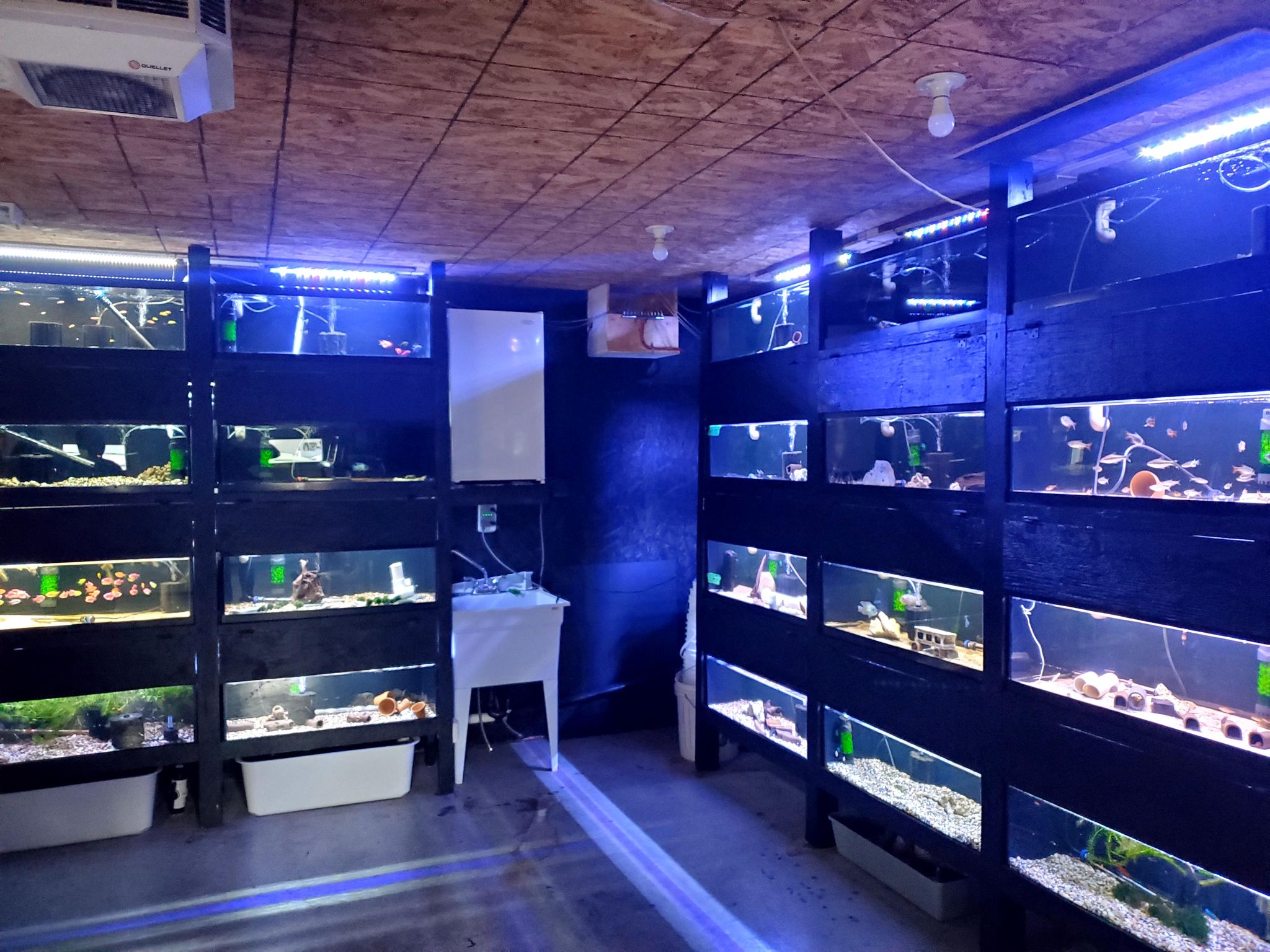 Dans son sous-sol se retrouvent six aquariums, dont l’un est immense (230 gallons). Dans son garage, là où il fait l’élevage, on y retrouve 24 aquariums qui tapissent deux murs.