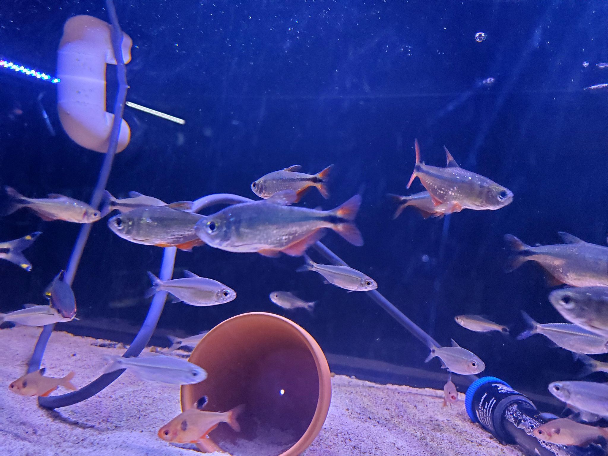 « Ici, chaque aquarium possède un système de pH indépendant, adapté aux poissons qui s’y trouvent. J’ai un système de filtration à air central qui offre une bonne qualité d’eau. Mes poissons sont de bonnes qualités. C’est très rare que j’en aie qui meurent. Pour la reproduction, j’achète toujours une bonne quantité d’une même espèce. Comme ça, je sais que j’ai au moins un mâle et une femelle », explique-t-il.