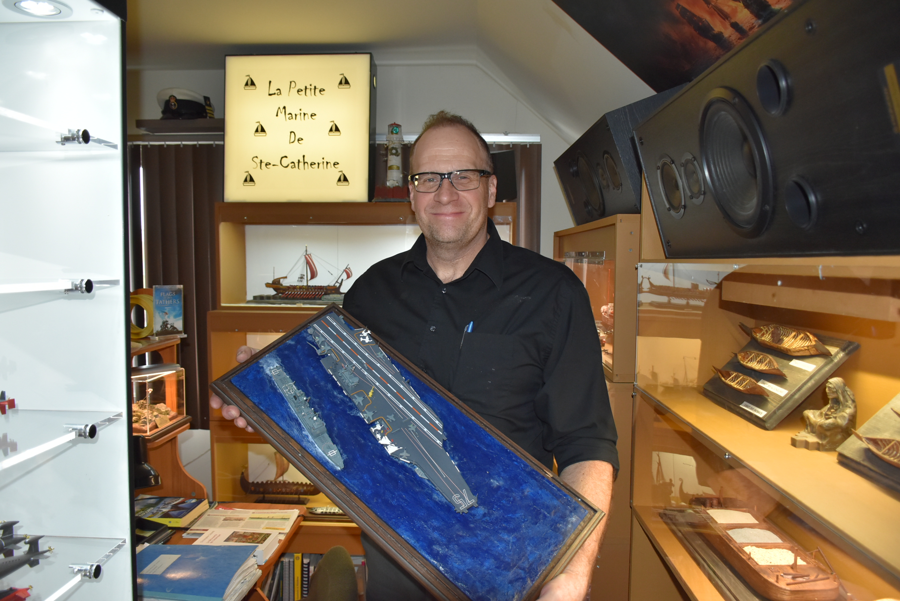 Ce dernier compte une impressionnante collection de maquettes de bateaux. En plus de 40 ans de pratique, il a accumulé environ 400 modèles de différents formats. Lorsque l’on considère qu’une maquette peut nécessitée jusqu’à 1 500 heures de travail, on comprend toute l’étendue du travail.