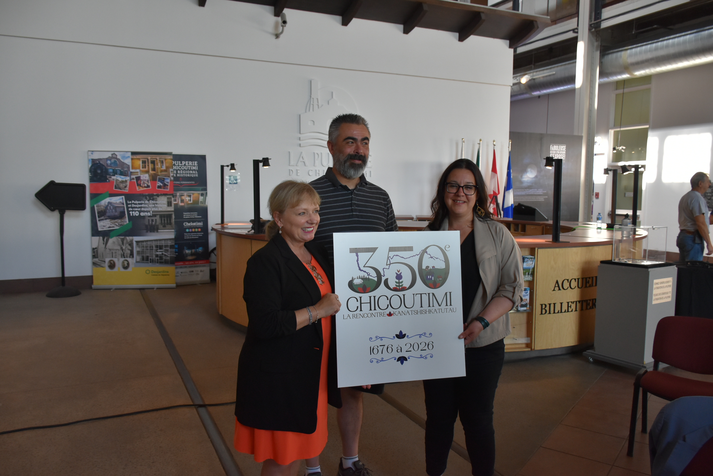 La Corporation des Fêtes du 350e anniversaire de Chicoutimi, établissement historique, a dévoilé jeudi matin, le logo officiel des festivités pour la commémoration de 1676-2026. Ce dernier a été conceptualisé par la société d’histoire et d’archéologie de Mashteuiatsh.