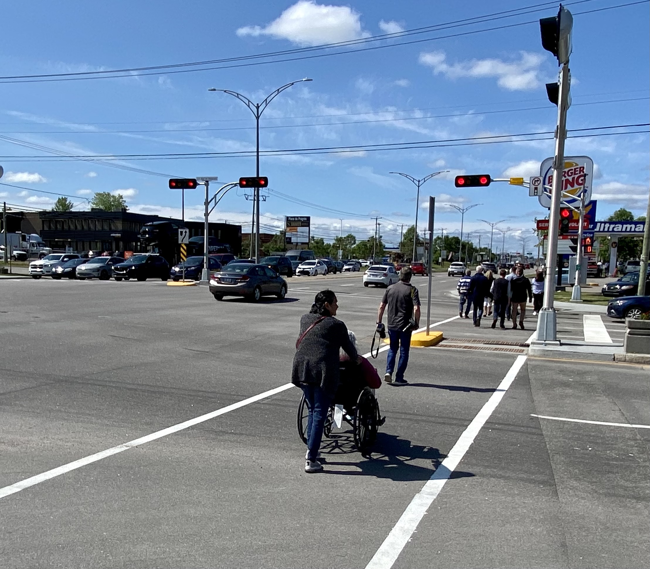 Il s’agit d’un projet pour améliorer la mobilité de tous les habitants de Saguenay, c’est pourquoi la nouvelle traverse est aussi adaptée pour les personnes à mobilité réduite. Elle est considérée comme étant une traverse prioritaire à sécuriser pour les piétons en raison du nombre important de voies à traverser et du débit de véhicules dans chaque direction.