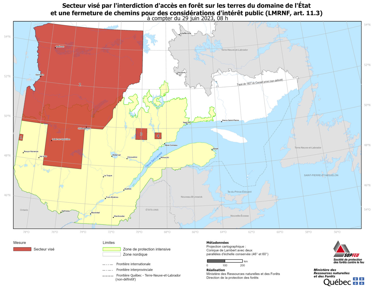 Le ministère des Ressources naturelles et des Forêts, de concert avec la SOPFEU, lève l'interdiction d'accès en forêt sur une partie du territoire qui était jusqu'ici interdit.