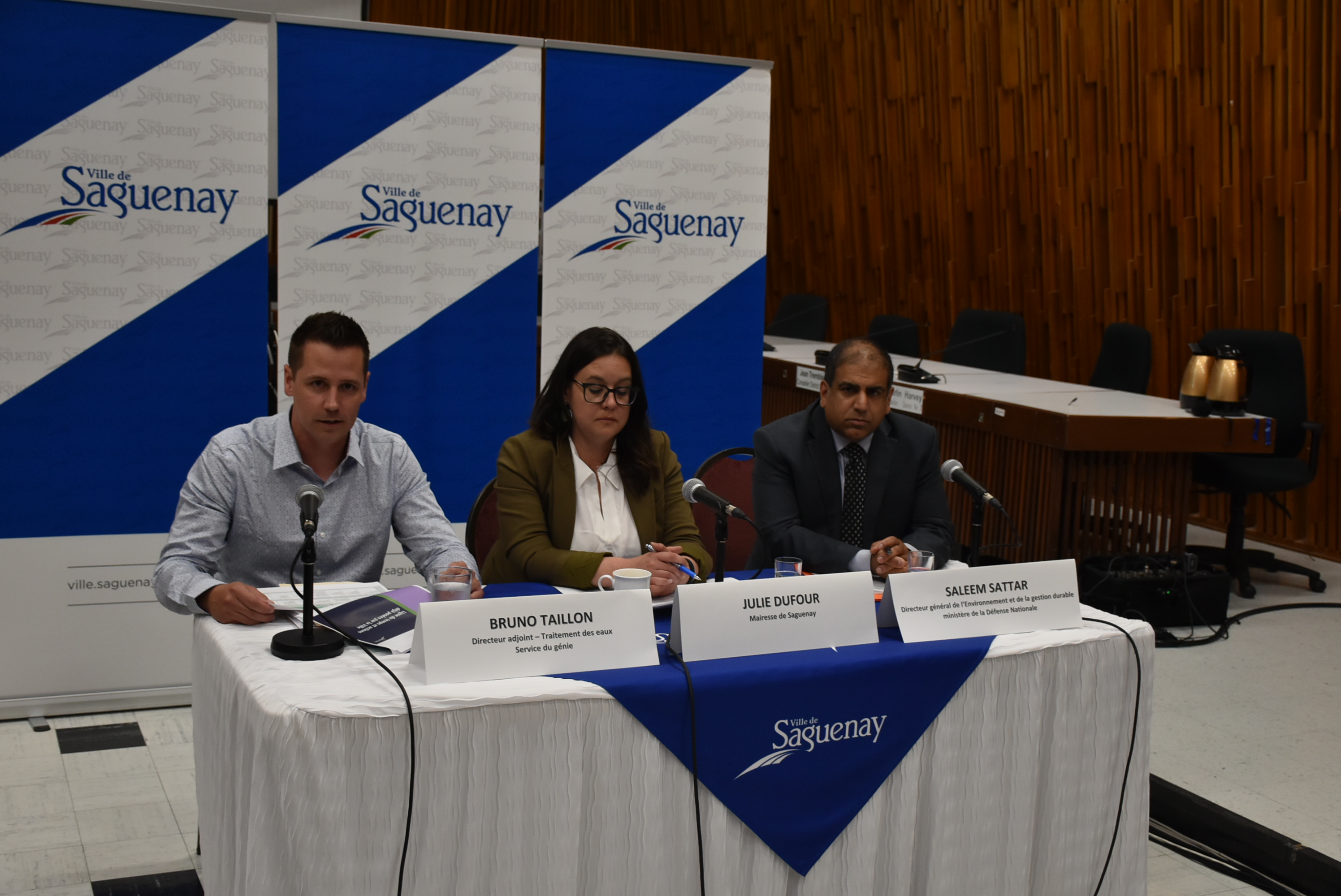 La mairesse a fait le point, mercredi après-midi, sur la situation de l’eau potable dans le secteur La Baie, ainsi que sur les solutions à court et long terme pour régler la situation. Pour ce point de presse, la mairesse était accompagnée de Bruno Taillon, directeur adjoint, traitement des eaux au Service du génie et de Saleem Sattar, directeur général de l’Environnent de la gestion durable au ministère de la Défense du Canada. Les spécialistes, Catherine Habel, de la direction de la santé publique au Centre intégré universitaire de santé et de services sociaux (CIUSSS) du Saguenay-Lac-Saint-Jean et Stéphanie McFadyen, gestionnaire à la division de la qualité de l’eau et de l’air à Santé Canada, étaient également présentes pour répondre aux questions des journalistes.