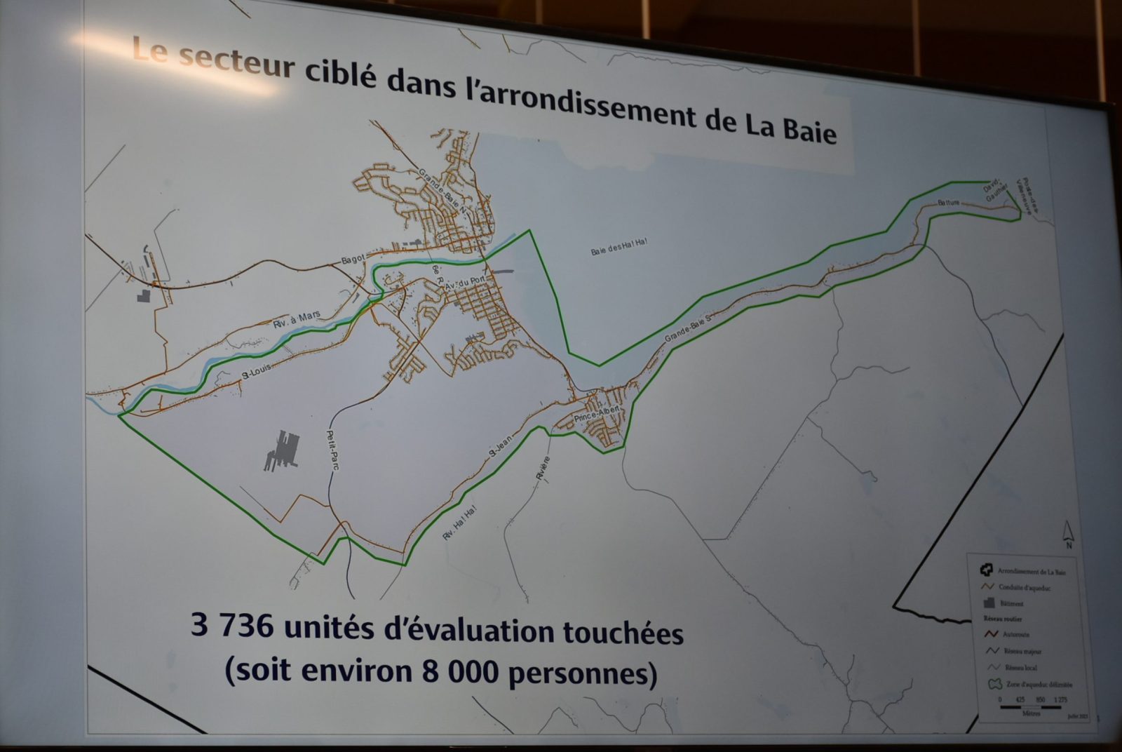 Plus précisément, les secteurs touchés sont ceux de Port-Alfred et de Grande-Baie, ainsi que le long du boulevard de la Grande-Baie Sud et une portion du chemin de la Batture. C’est 3736 résidences et plus de 8000 citoyens qui sont concernés par cette contamination.