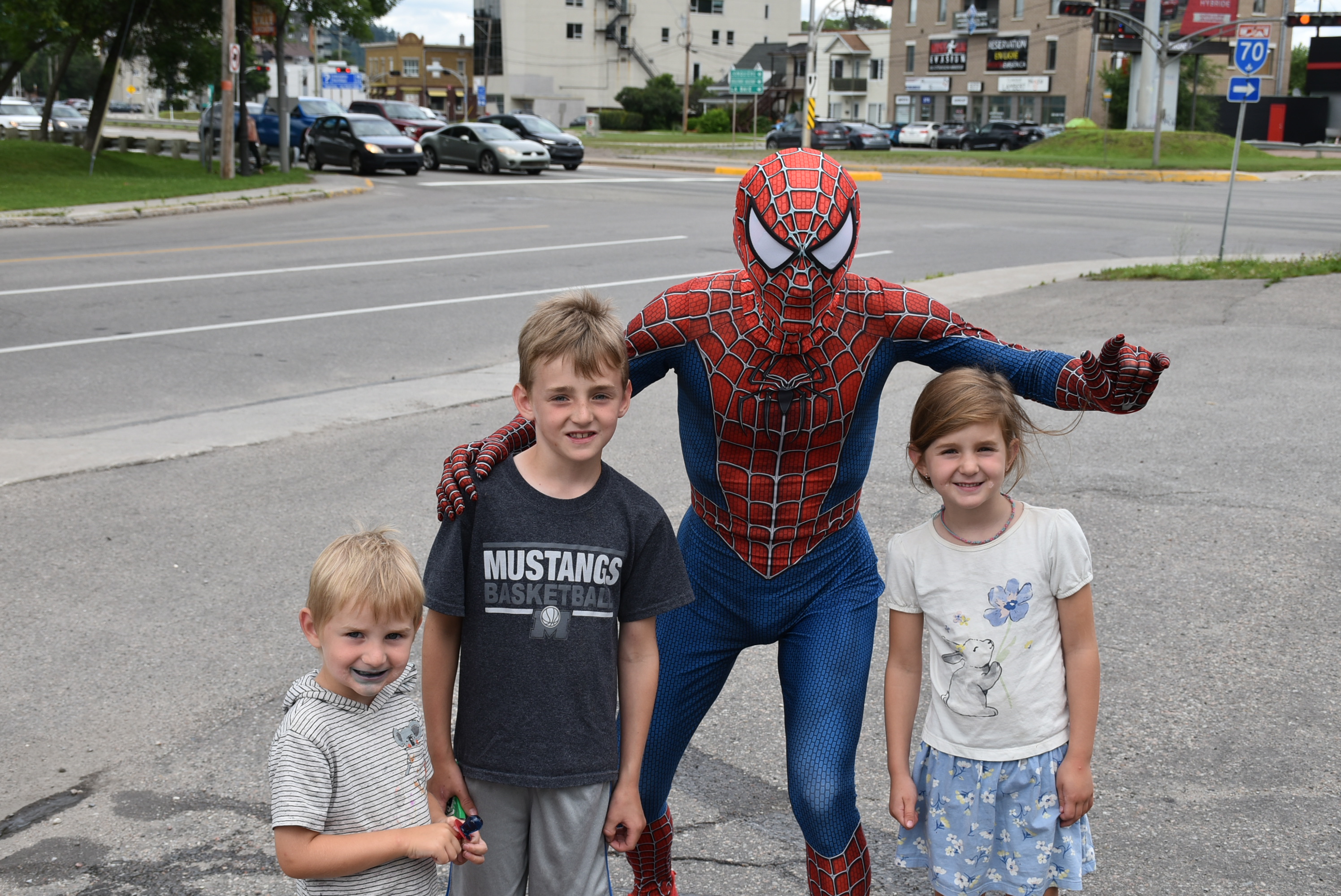 Accompagné de sa fidèle Mary-Jane, Spider-Man Saguenay attire bon nombre de curieux avec son énergie contagieuse et ses mimiques caractéristiques. À peine l’entrevue terminée que déjà une jeune famille approchait timidement l’homme, la mère souriante et ses enfants les yeux débordant d’enthousiasme.