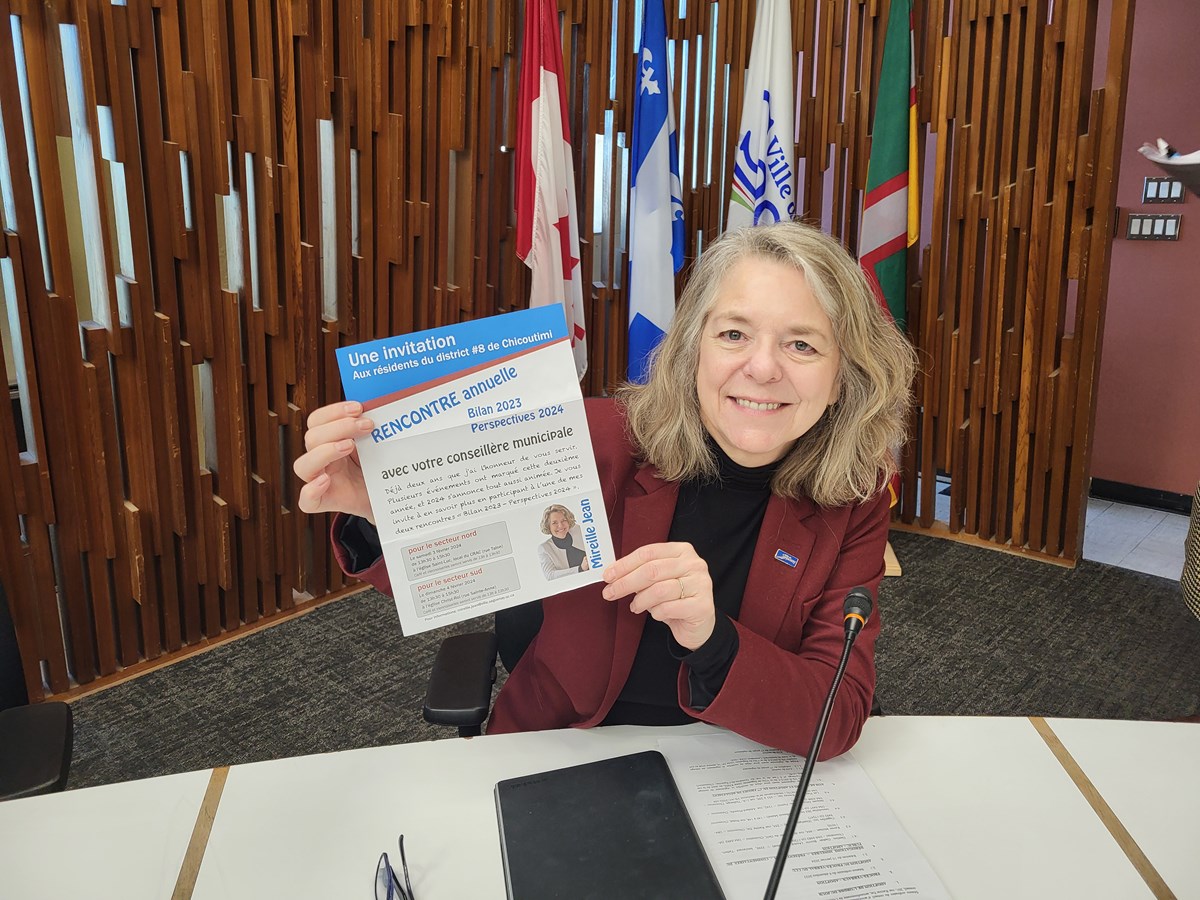 Mireille Jean reste fidèle à la promesse de tenir une rencontre avec ses citoyens une fois par année. La conseillère municipale a profité de la réunion du conseil d’arrondissement de Chicoutimi la semaine dernière pour annoncer qu’elle va de nouveau rendre des comptes sur son travail.