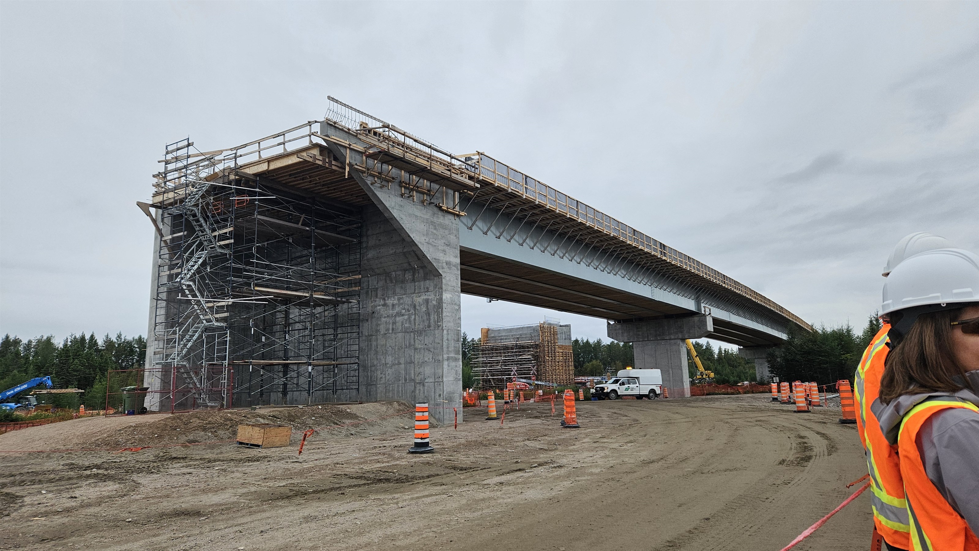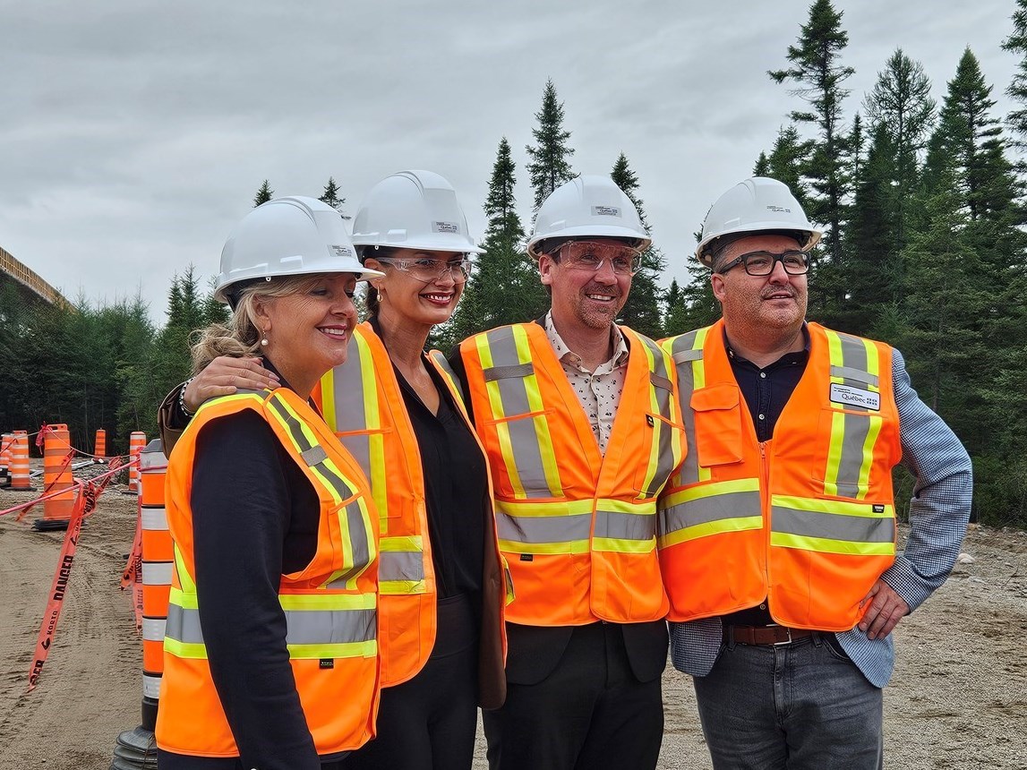 La vice-première ministre et ministre des Transports et de la Mobilité durable, Geneviève Guilbault, la ministre des Affaires municipales, Andrée Laforest, le député de Dubuc, François Tremblay, ainsi que le député de Jonquière, Yannick Gagnon, ont pu constater l’état d’avancement de cette étape du projet, soit la construction des deux ponts d’étagement au-dessus de la voie ferrée du chemin de fer Roberval-Saguenay.