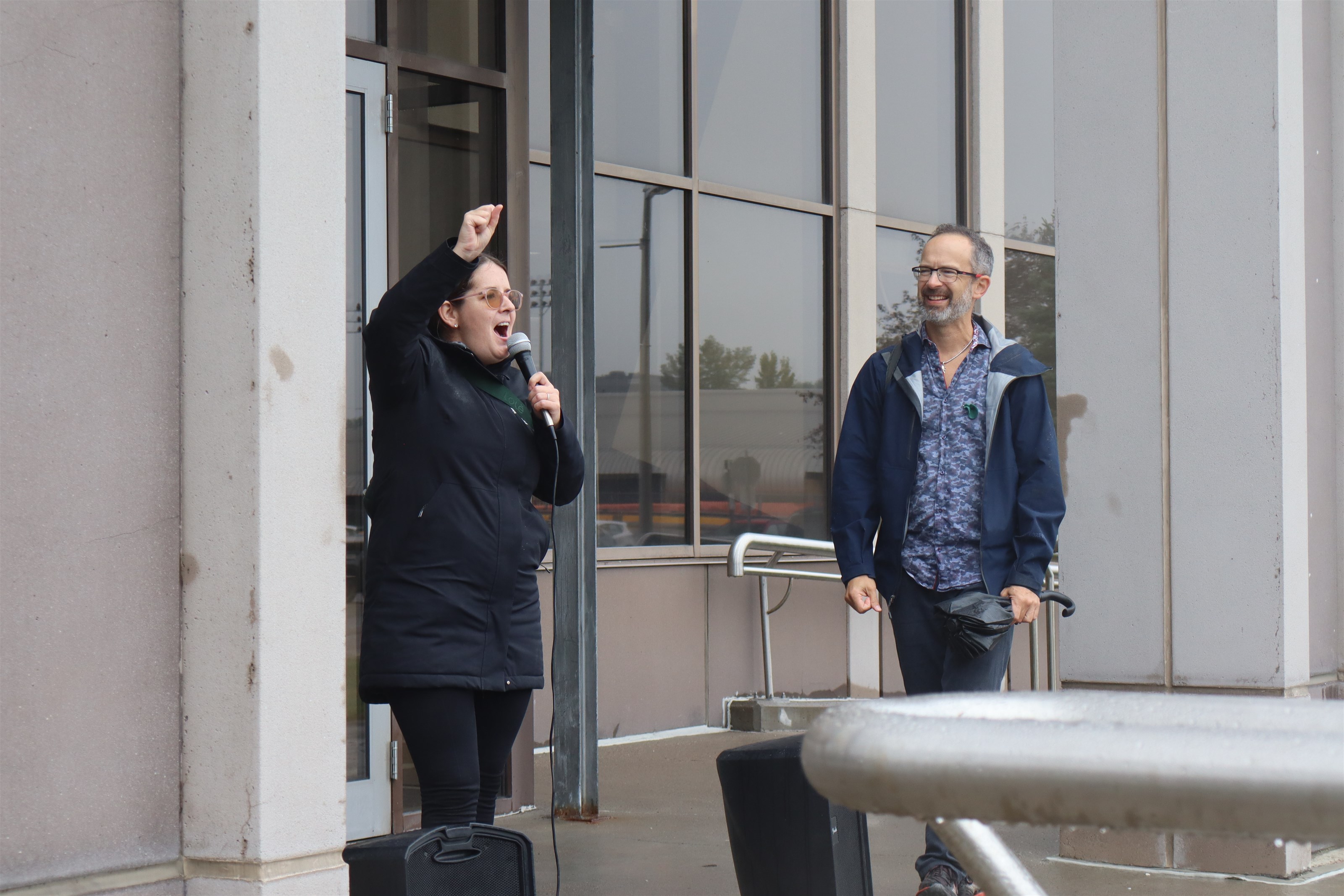 « Il y a beaucoup d’enjeux présentement qui n’ont pas été répondus. Qu’on parle du dossier caribou, de la non-analyse du dossier Northvolt, du fait que le gouvernement donne des terrains à des multinationales quand nous, on n’a pas de terrains pour construire des logements sociaux. Aujourd’hui, on ne sort pas juste pour l’environnement, mais pour toutes les inégalités qui nous touchent, surtout pour les personnes vulnérables qui ne peuvent être présentes parce qu’on le sait, ce sont toujours les mêmes qui s’en mettent plein les poches », a mentionné la vice-présidente du Conseil central Saguenay-Lac-Saint-Jean (CSN), Marie-Pier Ouellet.