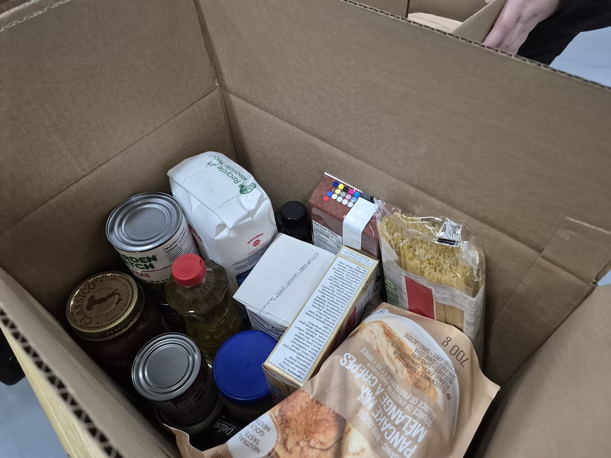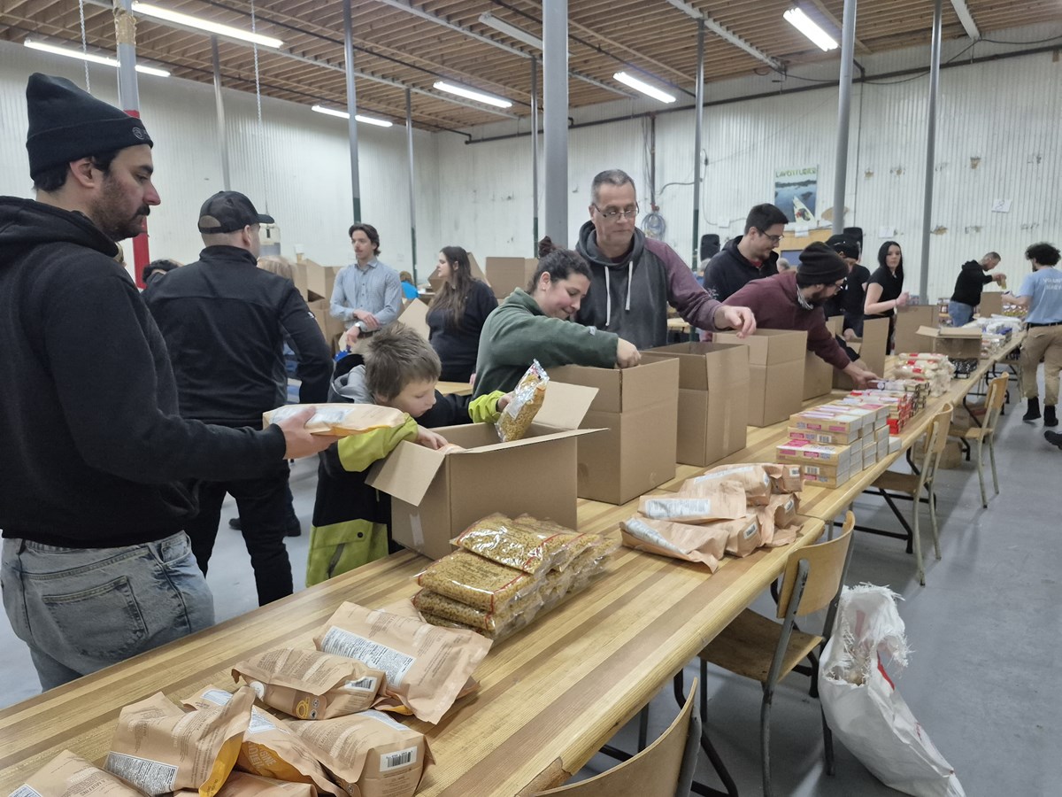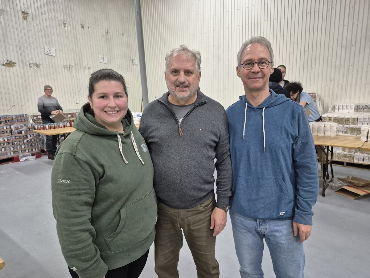 Dans les boîtes qui étaient remplies par une armée de bénévoles dans un entrepôt lors de notre passage, on a pu voir notamment du sirop d’érable et du fromage. Des confitures, un gâteau au chocolat et des tourtières également, qui proviennent de producteurs locaux.