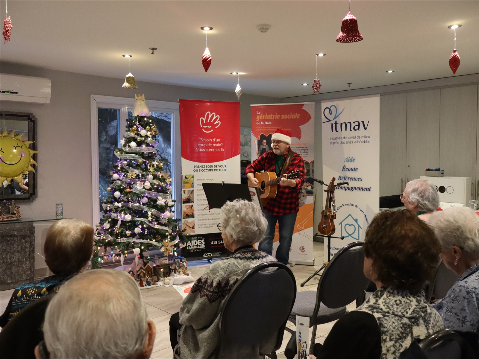 « Les élus de l’arrondissement de La Baie ont voulu penser à nos aînés durant le temps des Fêtes. Souvent, ceux-ci peuvent se retrouver seuls ou isolés à Noël, ce pourquoi on a décidé d’organiser cette série de spectacles », souligne d’abord l’intervenante pour les organismes Initiatives de travail de milieu auprès des aînés, Itmav, Sophie-Maude Tremblay.