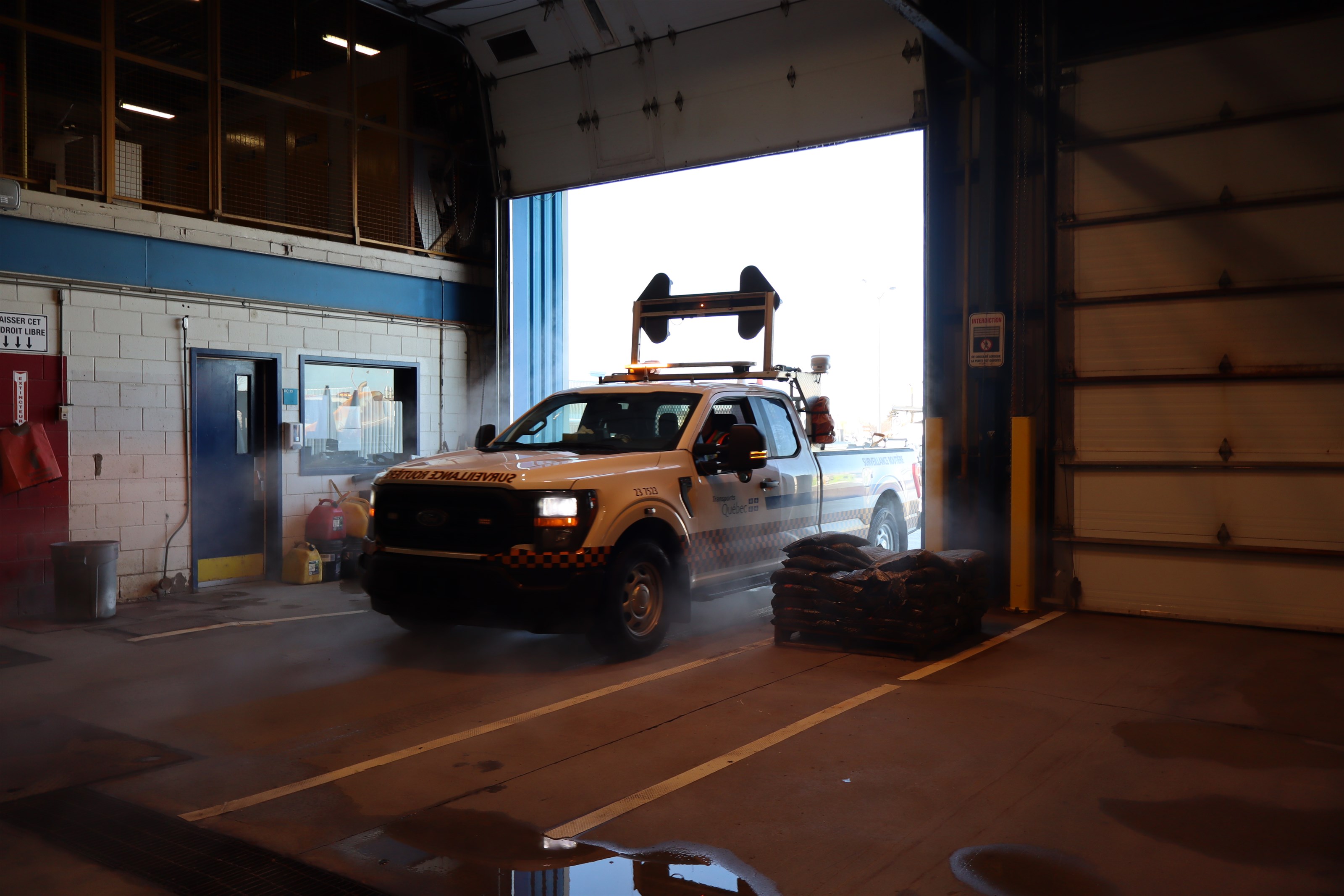 « Je procède à une ronde de sécurité. Je vérifie si mon camion est en bon état pour commencer. Ensuite, je patrouille le réseau urbain, les ponts entre-autres. Après, je m’en vais soit dans le secteur nord, soit dans le secteur sud, où le Parc des Laurentides et celui d’Hébertville », émet Marc Girard, qui a roulé près de 93 800 kilomètres l’an dernier.