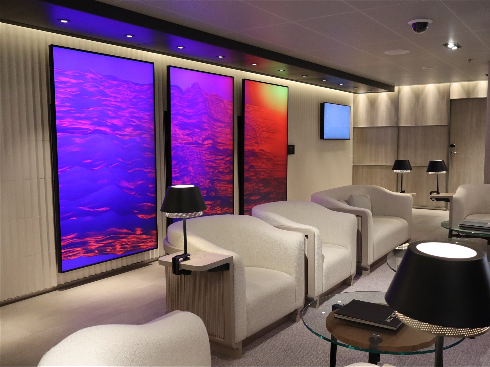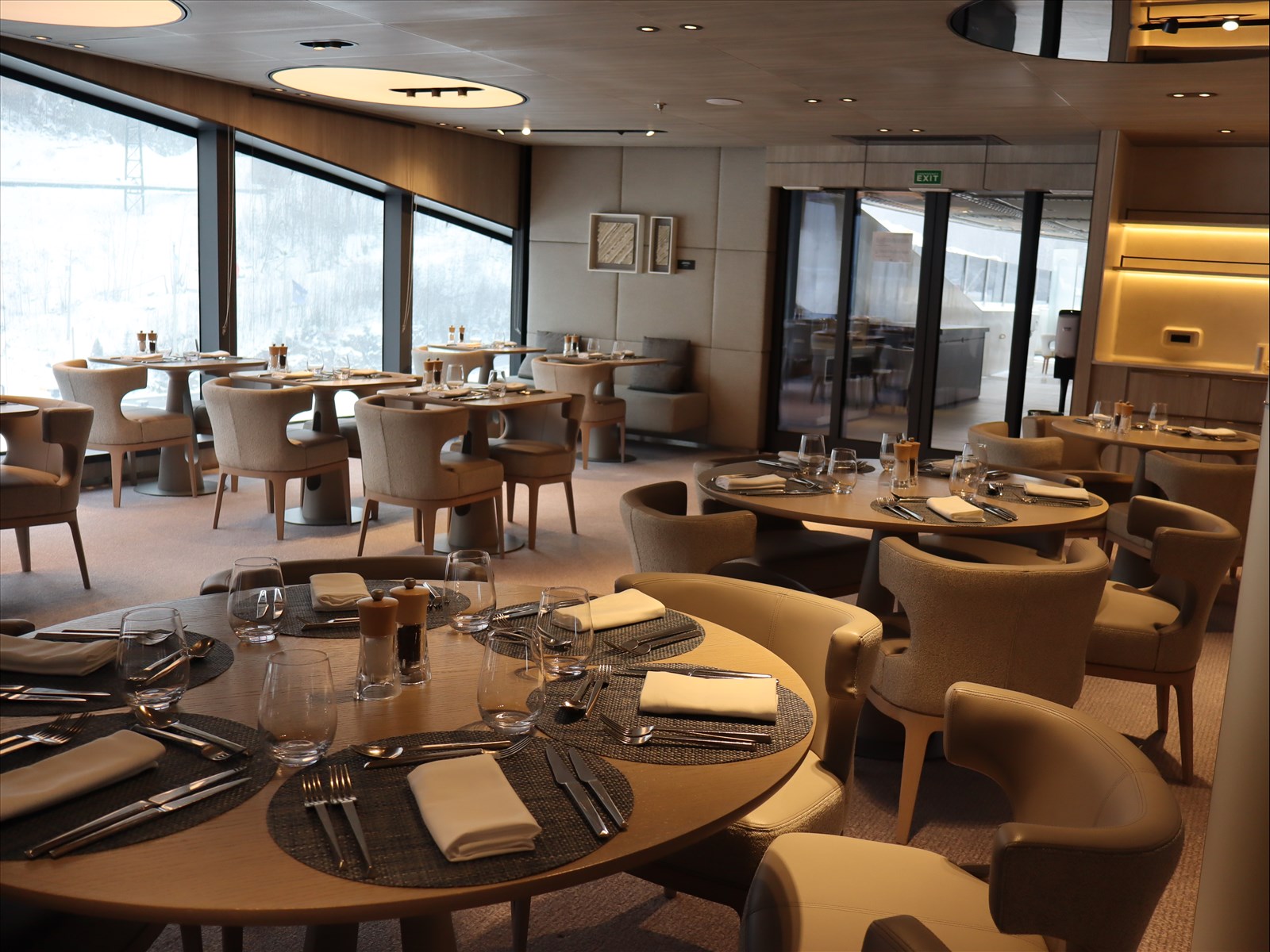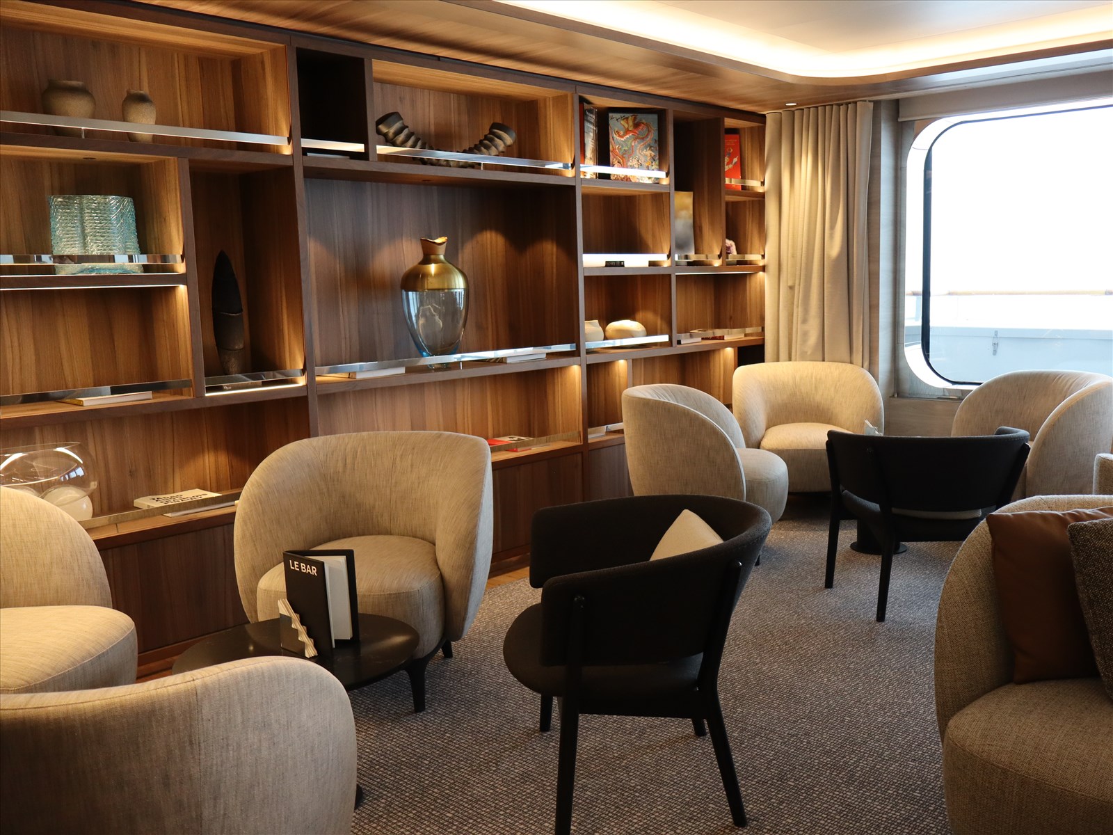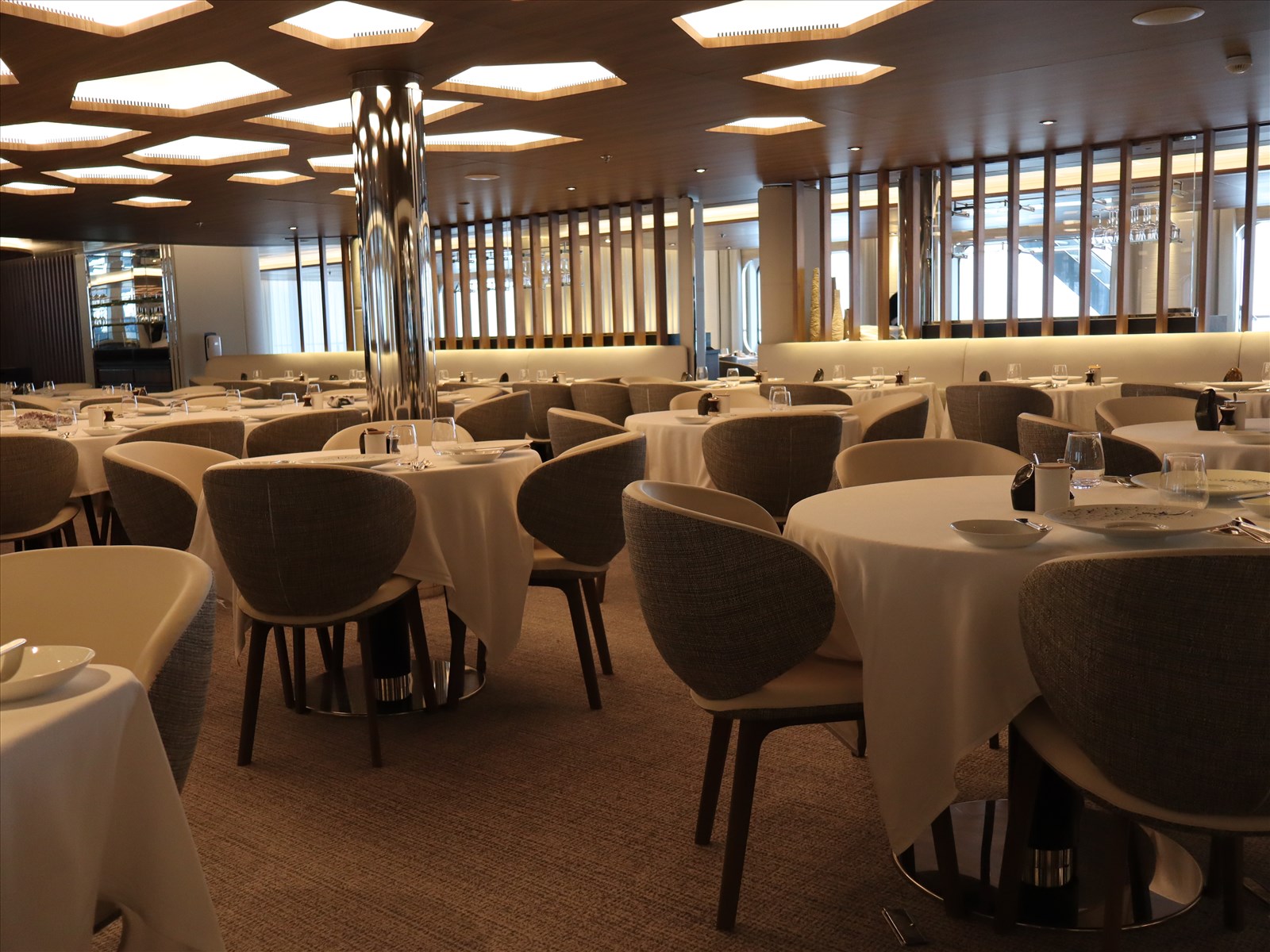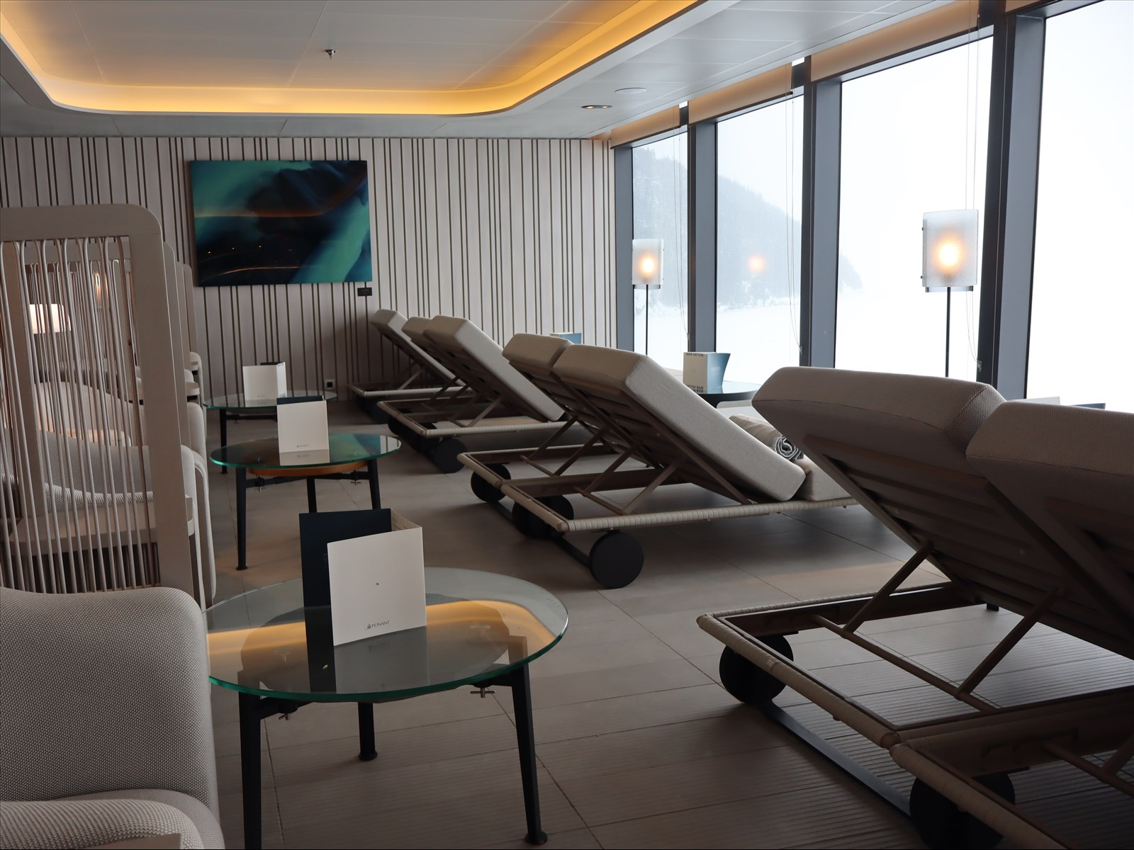 Il comprend également deux salles d’expédition, une salle de conférence de 30 places assises, un espace photo, un théâtre d’une capacité de 270 personnes, un salon principal, un coin fumoir, ainsi qu’un salon de thé et un bar avec programmation musicale. Des bains chauffés extérieurs, un espace bien-être avec salon de coiffure, cabines de massage et un sauna sont aussi mis à la disposition des passagers. Les restaurants proposent une cuisine française contemporaine, où le savoir-faire culinaire et la haute-technologie se côtoient.