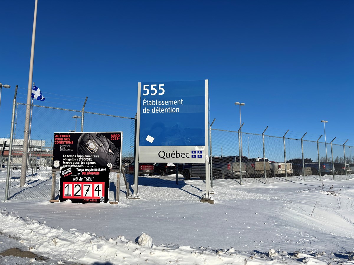 Nous avons été à même de constater que le Centre de détention de Roberval était surveillé de très près, avec la présence d’une personne en service, 24 heures sur 24, autour de l’extérieur de la prison. Lors de la prise de photos sur le bord du boulevard Horace-Beemer où l’on a construit le Centre, une employée nous a interpellé, à bord d’un véhicule de sécurité, gyrophares allumés et sirène en mode klaxon.