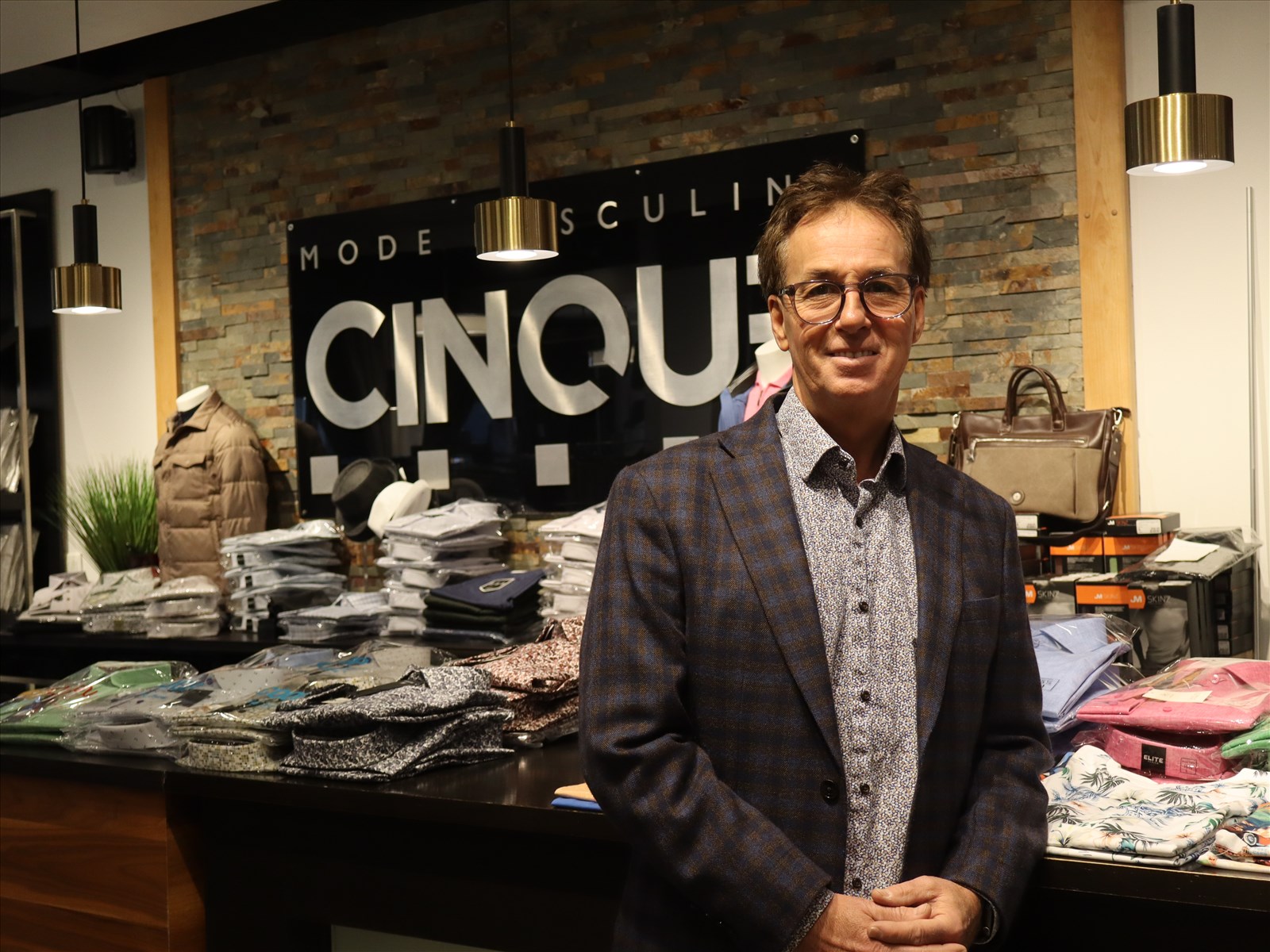 « On parle beaucoup de la veste sans manches, pour le printemps c’est vraiment tendance. Des couleurs terres, comme le beige, le brun, c’est super beau. Vert, fuchsia, corail, orangé, du rose, du jaune. Quand tu rentres ici, on est deux ans en avance sur tout en termes de mode », mentionne le propriétaire de Cinque mode masculine, Marc Tremblay.