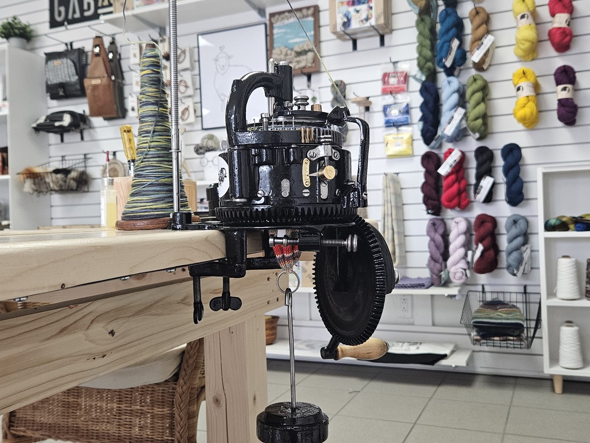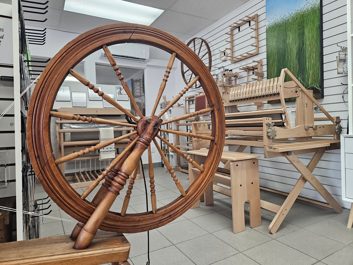 Attirail est aussi l’un des points de référence au Saguenay en ce qui concerne les équipements dans le domaine du textile: applicateurs d’huile divers, machine à tricoter antique, en passant par une gamme de métiers à tisser plus modernes de la marque Ashford, dont l’entreprise est la principale dépositaire. La propriétaire possède également deux rouets de différentes tailles, avec lesquels elle produit de la laine filée à longueur de semaine.