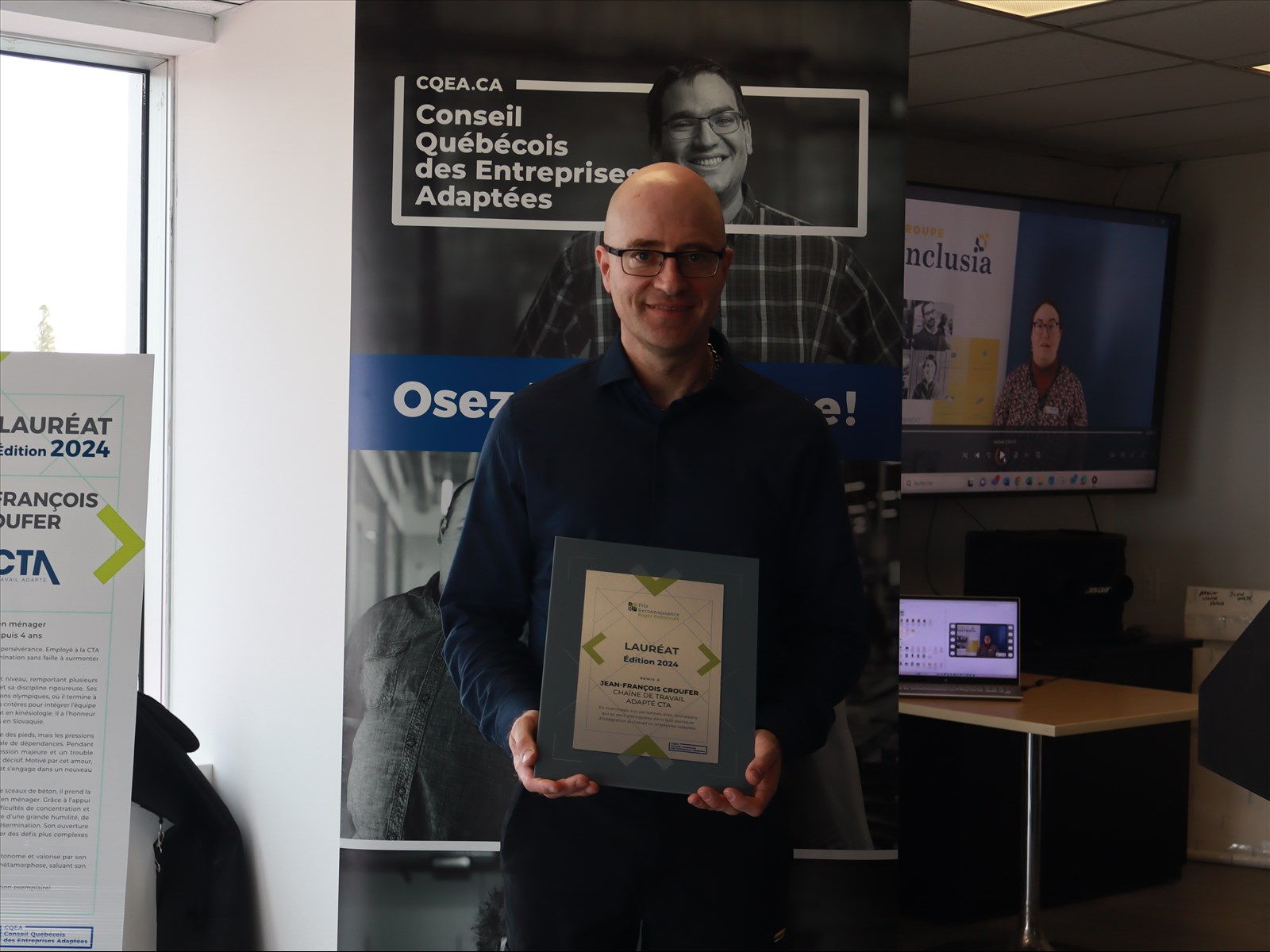 En raison de sa grande persévérance et de son parcours de vie tumultueux qui lui a permis d’être plus fort aujourd’hui, Jean-François Croufer, préposé à l’entretien ménager pour la Chaîne de travail adapté (CTA) d’Alma, s’est vu être récompensé ce jeudi 24 avril. C’est au Club de golf d’Arvida que l’ancien athlète de haut niveau a reçu un Prix reconnaissance Roger Pedneault, par le Conseil québécois des entreprises adaptées (CQEA).
