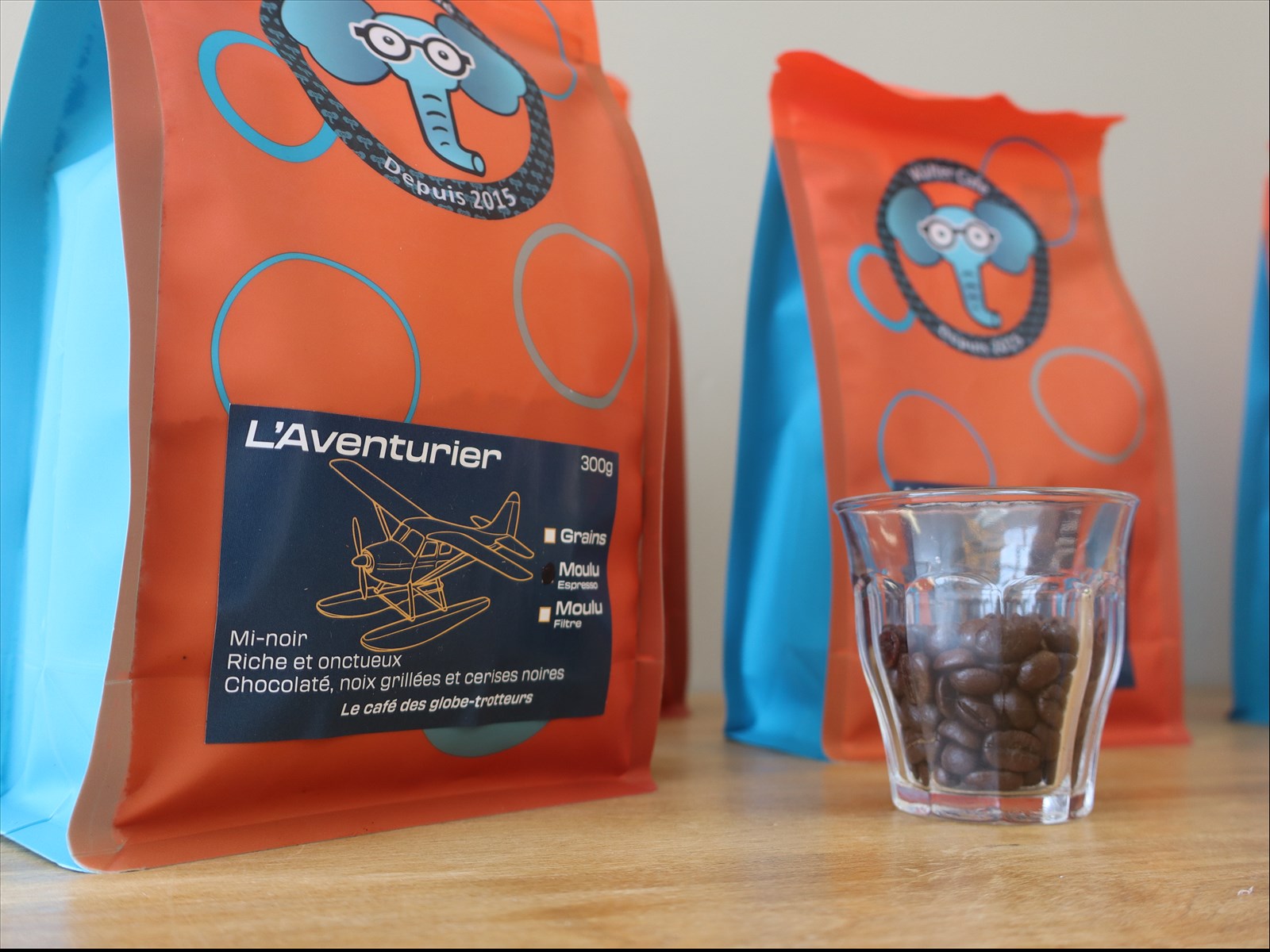 Ce dernier décrit L’Aventurier comme un torréfié mi-noir, qui offre une tasse riche et équilibrée, où chocolat noir, noix grillées et cerises noires se côtoient.