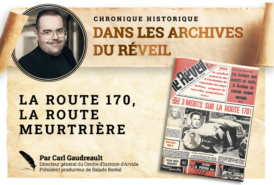Pour préparer ma chronique, je m’enferme dans la Salle Bartholomew de la bibliothèque d’Arvida, pour consulter les archives du Réveil. En feuilletant les pages jaunies, je tombe souvent sur des histoires intrigantes.