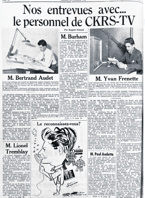 Dans l’édition du Réveil du 30 novembre 1955, on retrouvait un article qui s’intitulait : « Cours sur la télévision en une seule leçon! ». On expliquait qu’on devait tourner simplement un bouton pour ouvrir l’appareil, comment placer son téléviseur dans la pièce de la maison, le remplacement des lampes, etc. On expliquait pourquoi CKRS-TV était à la position 12, un technicien de RCA Victor racontait que les positions 1 à 5 étaient plus puissantes, mais subissaient beaucoup d’interférence et que les positions de 6 à 13 étaient moins puissantes, mais offraient une meilleure réception.