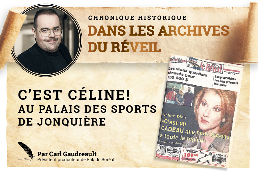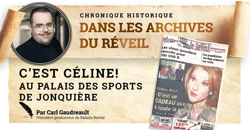 Dans l’édition du Réveil du 10 mars 1996, on annonçait la tournée des 200 spectacles à travers le monde et une seule prestation en région, Jonquière. Ce coup de maître, c’était l’œuvre de l’équipe de l’organisme de diffusion de Jonquière, Producson, composé de Louise Malaison, Ghislain Tremblay et Richard Charbonneau. Ils en étaient à leur neuvième année d’existence comme diffuseur. Il avait gagné un Félix comme meilleur diffuseur en 1990, donc leur expérience, leur crédibilité et leur lien d’amitié ont convaincu Donald K Donald, le producteur de la tournée, et René Angélil, de venir à Jonquière.