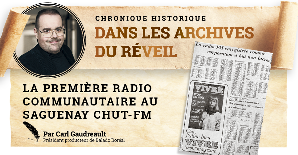 Mais hélas, cette belle aventure ne durera que deux ans et demi. À la suite de la syndicalisation des employés de la station, d’un déficit accumulé, d’un changement de la charte d’OBNL à coopérative, mais surtout le manque d’intérêt de la mission de base de certains animateurs et employés de la station dans l’animation et la programmation, les membres ont convenu d’abandonner la licence de diffusion pour CHUT-FM. C’est la fin de la première station de radio communautaire au Saguenay. Mais ce n’est pas la fin de la radio communautaire dans la région, car pendant la création de CHUT-FM, CHOC-FM de Jonquière venait au monde… Vous saurez tout de cette nouvelle expérience dans ma prochaine chronique!