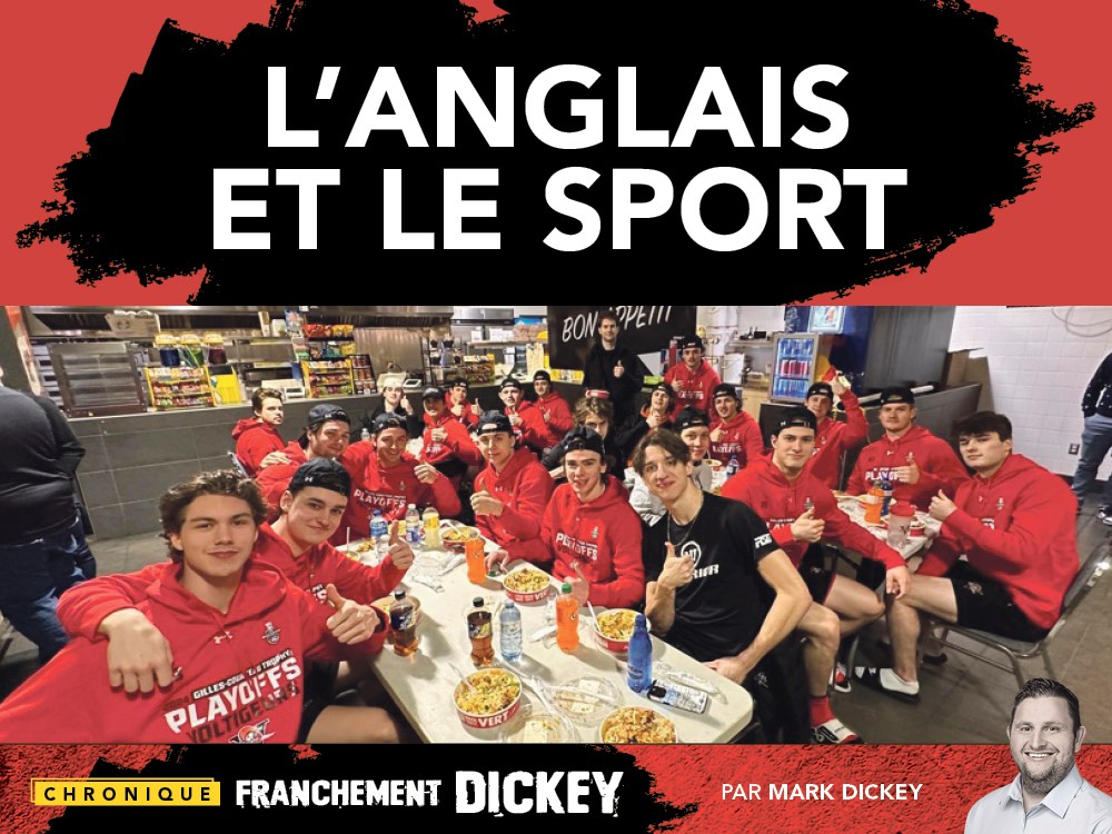 Au golf, qui n’a jamais parlé de sa « drive » ou de son « putting » déficient autour d’une bière dans le « clubhouse » ? Pour consommer beaucoup de football et suivre une équipe dont la majorité des matchs sont présentés en anglais, il va m’arriver régulièrement de chercher le terme français pour certains joueurs de position. Là où j’ai une responsabilité, c’est de dire et d’écrire les bons mots, que ce soit à la radio ou ici dans Le Réveil. En tant que membre des médias, c’est un devoir. Toutefois, dans une chambre de hockey, dans l’émotion d’un vibrant discours, je n’ai rien contre les « all the way » et « d’aller chercher une grosse win ».