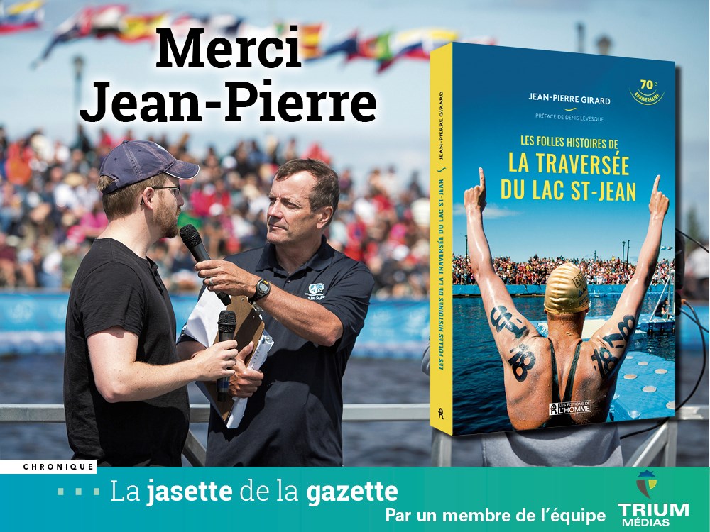 Quel cadeau offre Jean-Pierre Girard à la population du Saguenay–Lac-Saint-Jean et surtout à ceux qui ont toujours été fascinés par le mythique marathon que représente la Traversée du lac-St-Jean à la nage. Un livre sur les folles histoires de cette épreuve unique au monde.