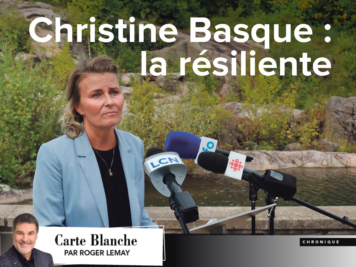 Si Christine Basque s’est forgé une solide carapace, il n’y parait rien au premier abord. Elle répond avec candeur et une certaine naïveté aux questions de l’intervieweur, posément, souriante. Pas étonnant qu’on établisse depuis le début un parallèle entre Christine Basque et Josée Néron. Le même bleu des yeux, la même blondeur, même élégance, la même approche de collégialité. Même parti politique, l’Équipe du Renouveau Démocratique. Des sœurs cosmiques ?