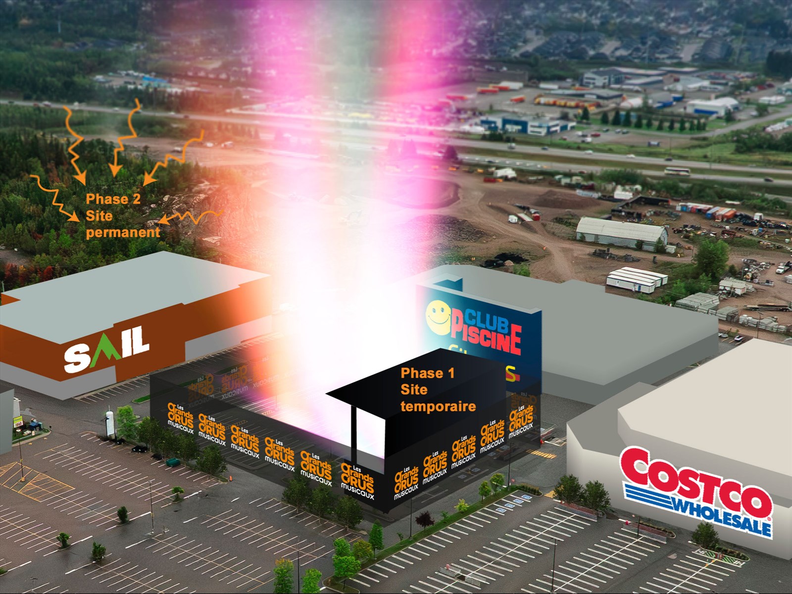 La première phase du projet prévoit l’installation d’une scène temporaire dans le vaste stationnement où se trouvent les commerces Sail, Club Piscine, Costco et Rona, à l’intersection des boulevards Talbot et du Royaume. Les discussions avec la Ville de Saguenay seraient déjà avancées afin d’obtenir les dernières autorisations nécessaires.