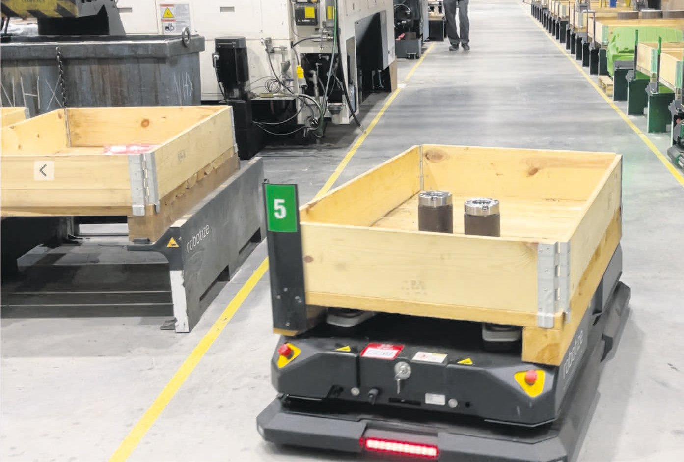 « Nous allons ajouter deux machines à la deuxième cellule de Fastems. Les robots qui se promènent dans l’usine et qui ressemblent à des balayeuses apportent des pièces d’une unité de travail à l’autre. »