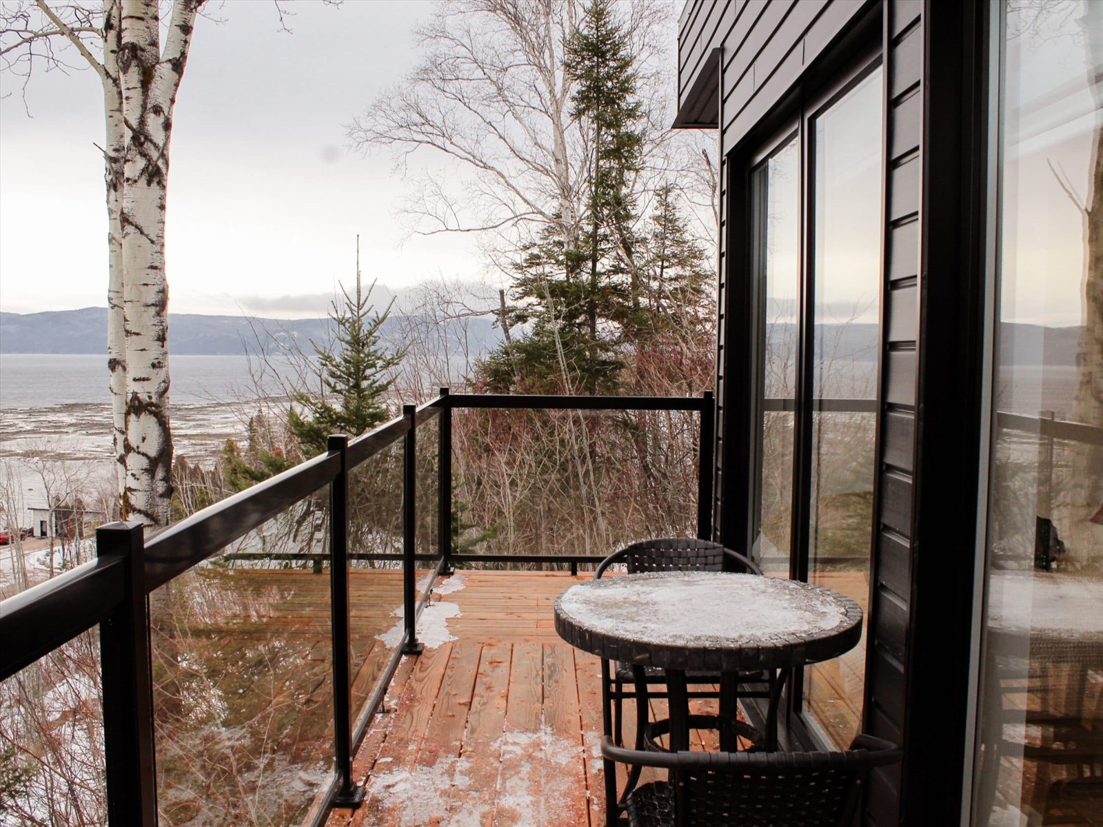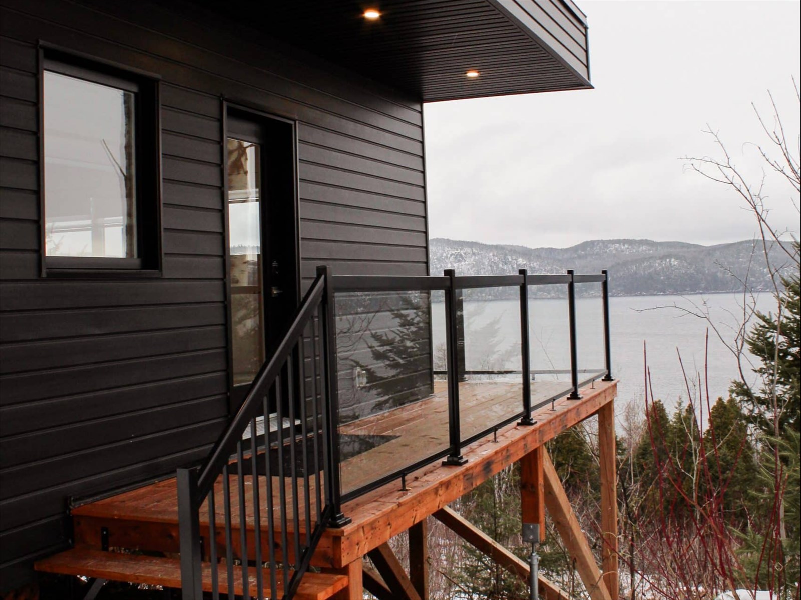 « En février 2022, j’achetais le terrain avec mes collègues. Ensuite, il y a quand même eu plusieurs complications, ce qui explique la durée de réalisation du projet. Il fallait construire un chemin, amener l’eau et l’électricité, installer les fosses septiques. Mais ça a valu la peine, parce qu’on peut profiter de la plus belle vue du Saguenay. Finalement, on est vraiment content et satisfait du résultat final », mentionne Vincent Alarie.
