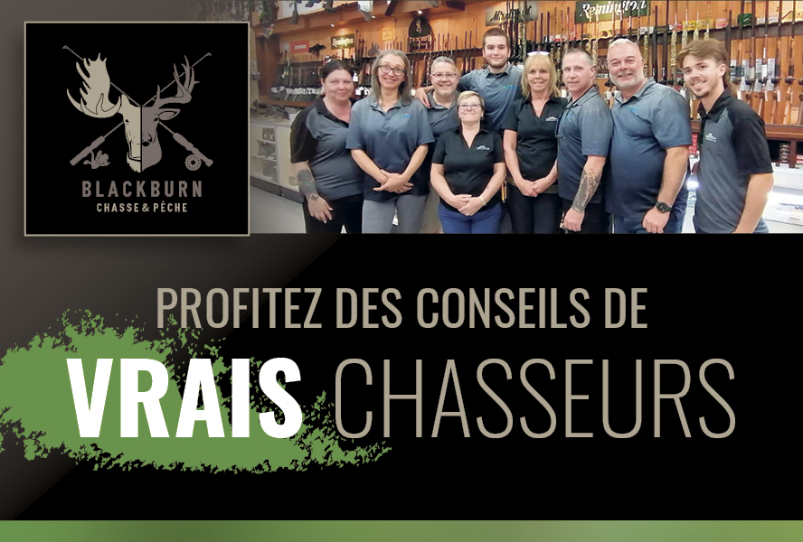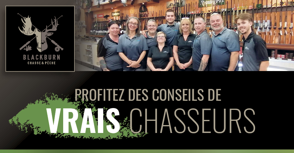 L’équipe de Blackburn Chasse & Pêche Pronature vous souhaite une chasse stimulante et à la hauteur de vos espérances! Vous avez besoin de conseils, venez nous voir, nous sommes des chasseurs!