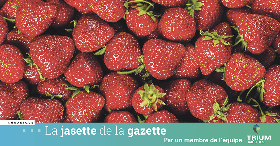 Je tapote les touches de mon clavier pour écrire cette chronique, les doigts rougis de fraises. De fraises du Québec, plus précisément de Chambord. J’en équeute une cinquantaine par jour ces temps-ci pour m’en délecter comme les petits bonbons délicieux qu’ils sont, rouge vif et sucrés à souhait.