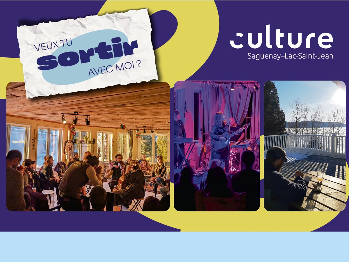 Veux-tu sortir avec moi ? est une campagne de Culture Saguenay–Lac-Saint-Jean qui t’invite à vivre une expérience culturelle à la fois nostalgique et vibrante : danser, chanter, réfléchir, t’émouvoir… et tomber en amour avec les lieux qui font battre le cœur de notre région.