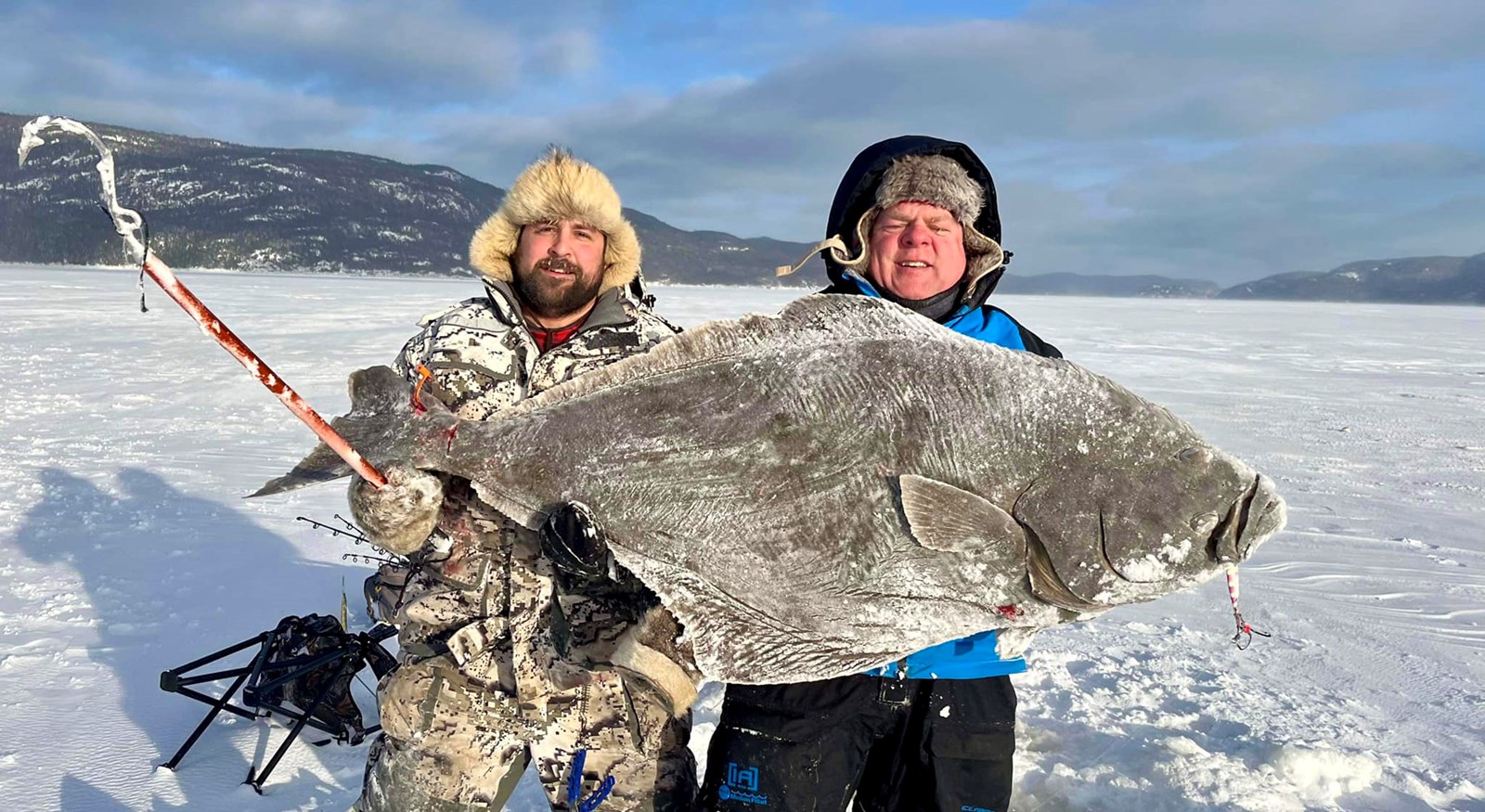 Le premier flétan atlantique de la saison a été pêché dimanche par Mathieu Aubin et son oncle Rémi Aubin sur les glaces du Saguenay à L’Anse-Saint-Jean.