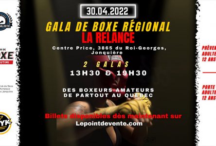 Les 3 clubs de boxe de la région (Alma, Jonquière et Chicoutimi), s’unissent afin de relancer la boxe au Saguenay-Lac-Saint-Jean. Ils tiendront ainsi ce samedi 30 avril, à Jonquière, le Gala de la relance régionale.