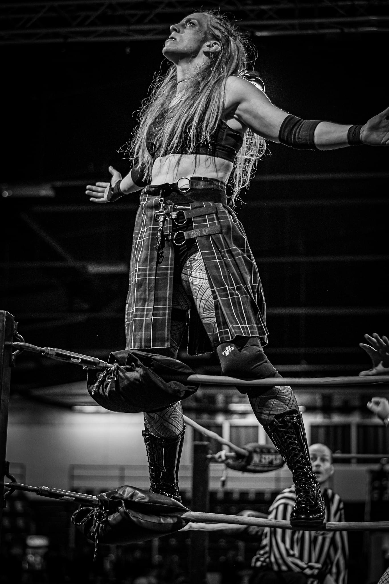 Donner le meilleur d’elle-même et offrir un show inoubliable aux spectateurs, c’est à cela que carbure la femme 36 ans dès qu’elle revêt le costume de son personnage de McKenrose, la lutteuse écossaise en kilt. Après tout, les ancêtres des McNicoll sont originaires de l’Écosse.